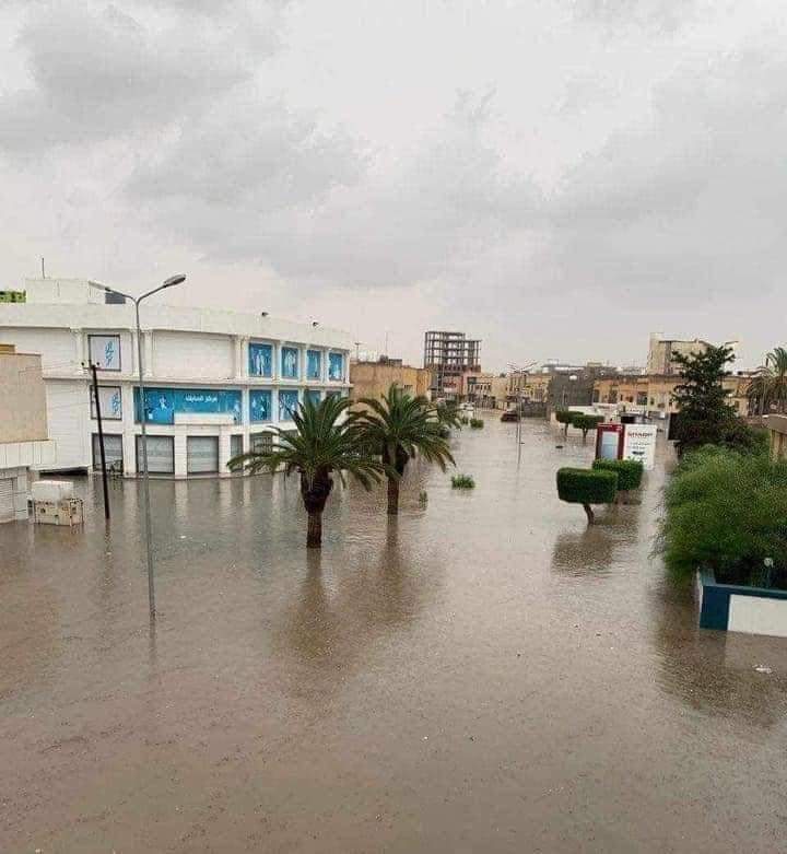وفي وقت سابق انتشرت مقاطع مصورة تظهر المياه تغرق الشوارع في عدة مناطق ليبية، إذ تناقل الليبيون على مواقع التواصل مشاهد مرعبة لرياح عنيفة، أحدثت ماسا كهربائيا في محولات الكهرباء بعدد من الأحياء.