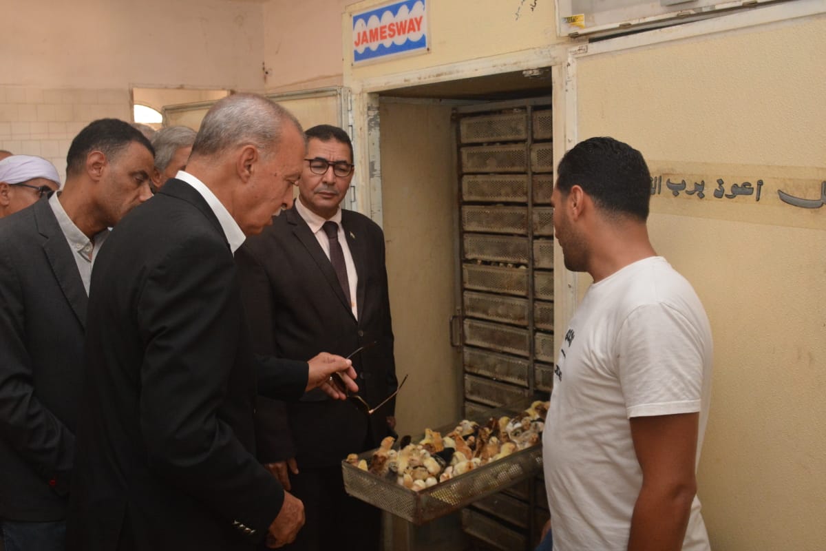 جاء ذلك خلال تفقده ١٤ صوبة زراعية لإنتاج شتلات الخضار على مساحة فدان ونصف الفدان ورثة الحاج حسين عبد المجيد وثلاجة لحفظ الخضروات والفاكهة بطاقة ٥٠٠ طن، وتفقد معمل تفريخ به ٣ ماكينات تفريخ بطاقة إنتاجية تقدر ب ١٨٠ ألف كتكوت / شهر.