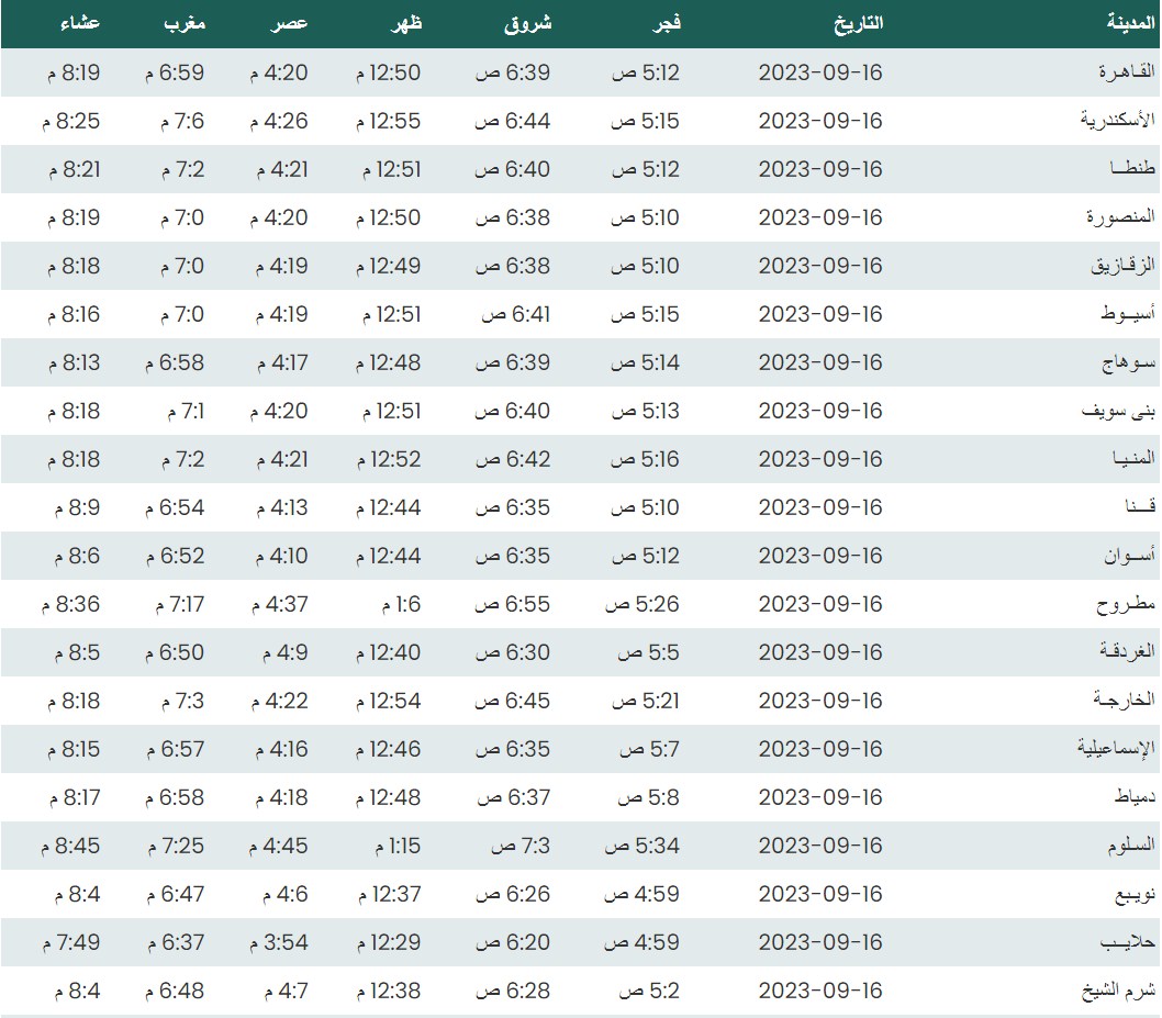 مواقيت الصلاة اليوم بتوقيت القاهرة