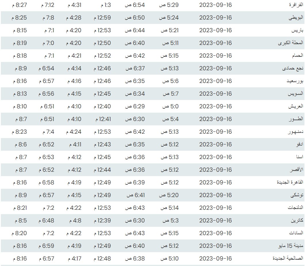 مواقيت الصلاة اليوم، موعد أذان المغرب اليوم السبت 16 - 9 - 2023 في القاهرة والمحافظات