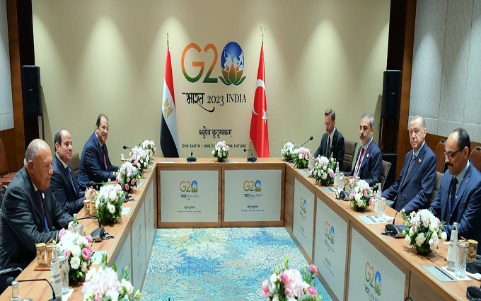 خطوة جديدة شهدتها مدينة نيودلهي الهندية بين الرئيس السيسي ونظيره التركي رجب أردوغان تؤدى إلى تأسيس علاقات طبيعية بين مصر وتركيا من جديد كما تعكس العزم المشترك على العمل نحو تعزيز علاقاتهما الثنائية لمصلحة الشعبين المصري والتركي.