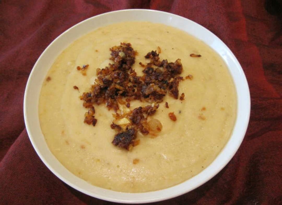 نضعه في الأطباق، ويقدم عندما يبرد، ويزين الوجه بالبصل المحمر.