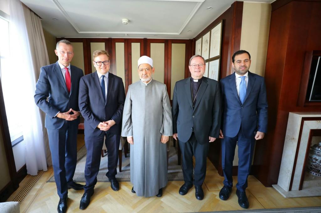 استقبل فضيلة الإمام الأكبر الدكتور أحمد الطيب، شيخ الأزهر الشريف، رئيس مجلس حكماء المسلمين، اليوم الاثنين بمقرِّ إقامة فضيلته بالعاصمة الألمانية برلين، المطران جورج باتزنج، رئيس مجلس الأساقفة الألمان، بحضور المستشار محمد عبد السلام، الأمين العام لمجلس حكماء المسلمين.