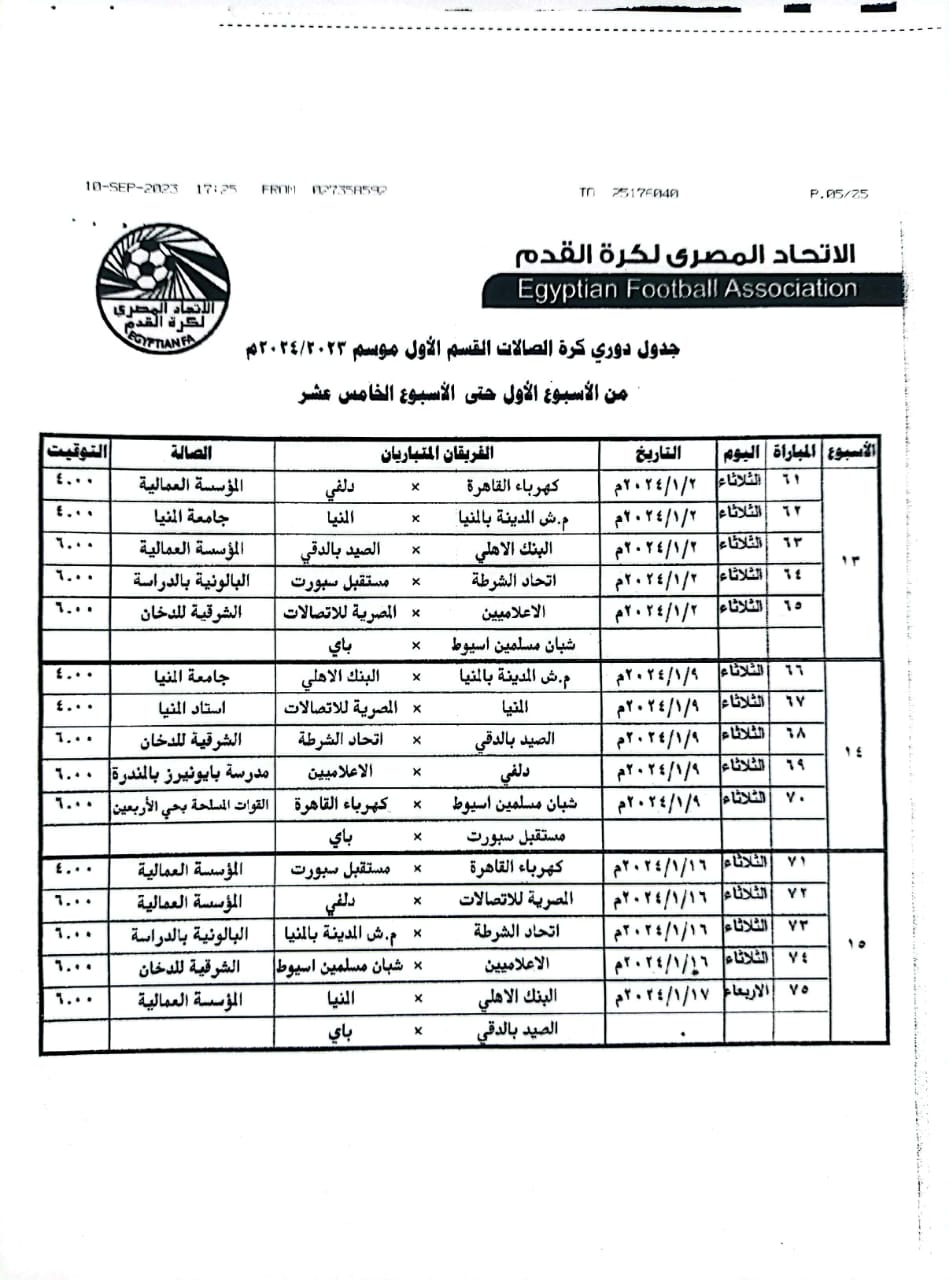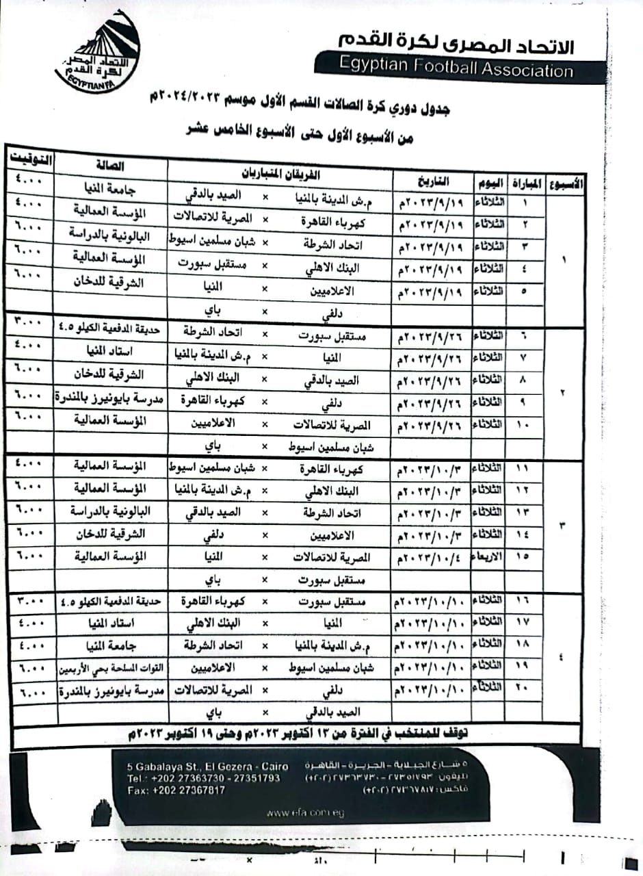 أعلن اتحاد الكرة جدول دوري كرة الصالات، على أن تقام مبارياته بدون حضور جماهيري.