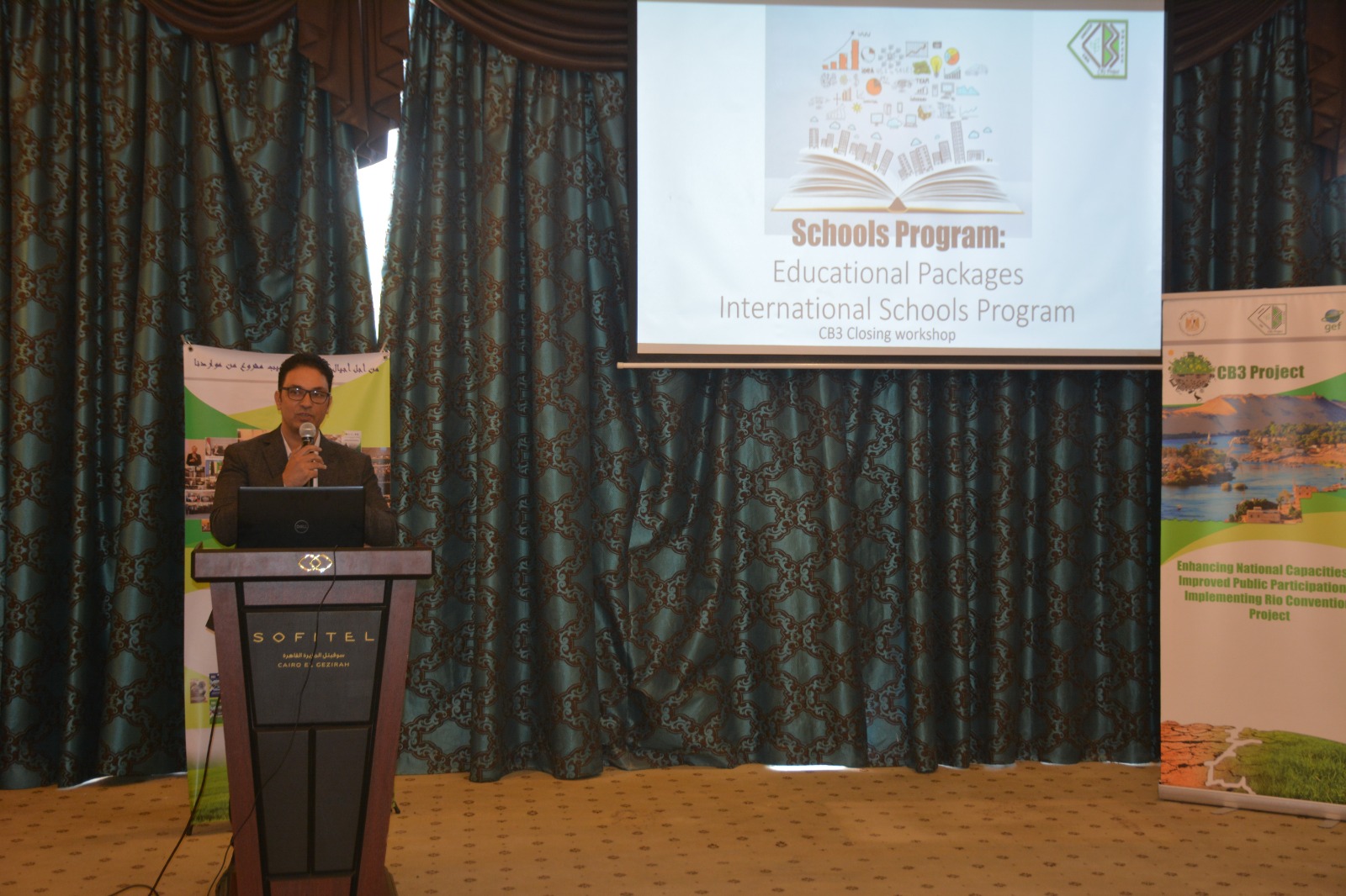 ومن جانبه أستعرض الدكتور كريم عمر المسؤول الفني بمشروع بناء القدرات عن الأنشطة الذي نفذها المشروع بالتعاون مع وزارة التربية والتعليم، والحقائب التعليمية الخاصة بالتغير المناخي، التنوع البيولوجي، الاستدامة البيئية، والتدريبات التي قام بها المشروع لوحدة التوعية الطلابية بجهاز شئون البيئة والمدارس الدولية، لافتًا إلى إنجازات المشروع في مجال المحميات والتنوع البيولوجى، مُستعرضًا بعض الفيديوهات التي قام المشروع بإنتاجها للتوعية عن المحميات الطبيعية مثل محمية وادي الحيتان بالفيوم وكهف سنور بمحافظة بنى سويف.