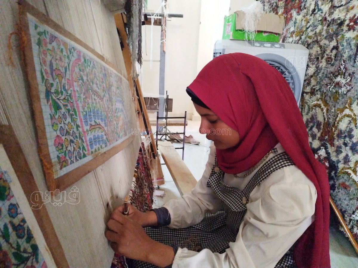 “فيتو” التقت فتاة شجرة الحياة داخل مشغل الحرير لصناعة السجاد اليدوي بتمويل من مؤسستي النداء وساويرس للتنمية.