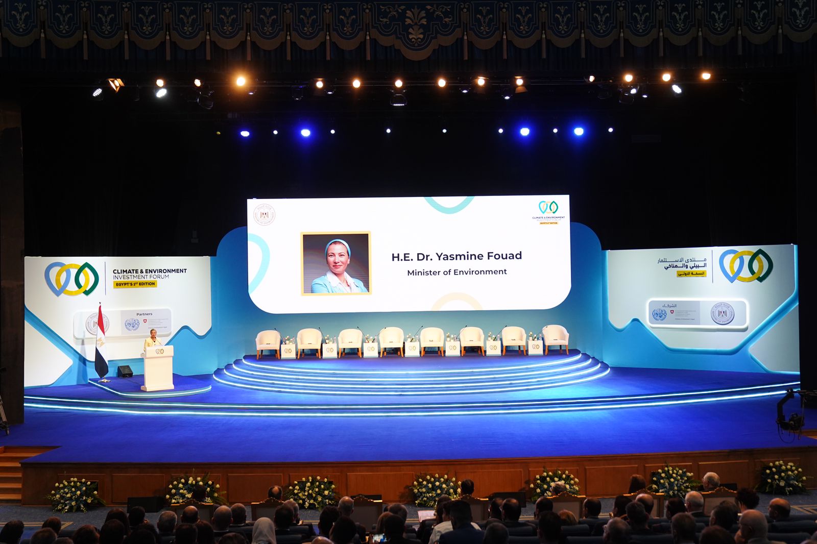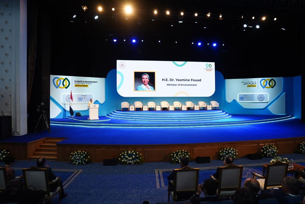 جاء ذلك خلال افتتاح فعاليات النسخة الأولى من منتدى الاستثمار البيئي والمناخي تحت رعاية فخامة رئيس الجمهورية وبحضور رئيس مجلس الوزراء والسيدة ايفون باومان سفيرة سويسرا لدى مصر، ولفيف من الوزراء والسفراء وممثلي الحكومة والقطاع الخاص والمجتمع المدني والاعلاميين.