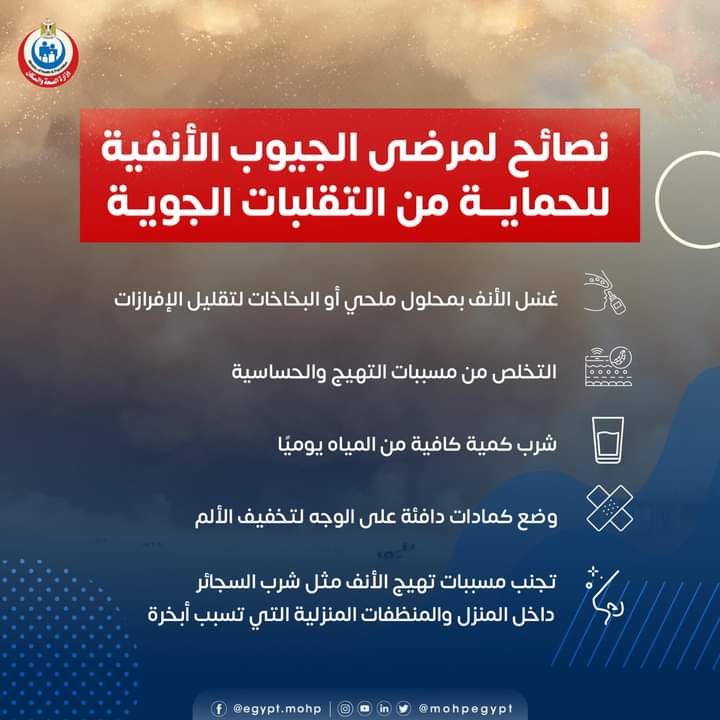 وجهت وزارة الصحة نصائح لمرضى الجيوب الأنفية للحماية من التقلبات الجوية والعاصفة دانيال.