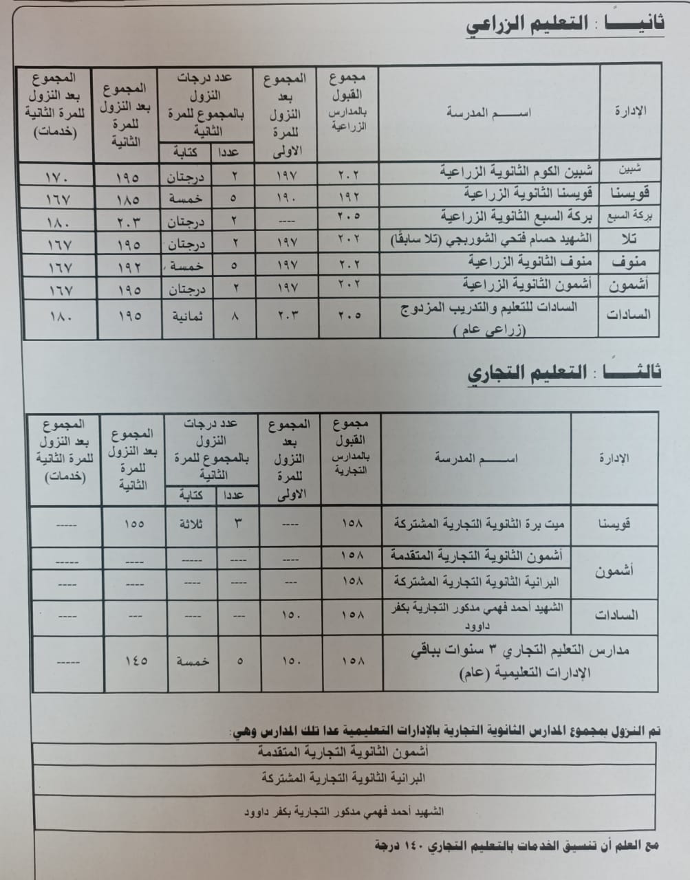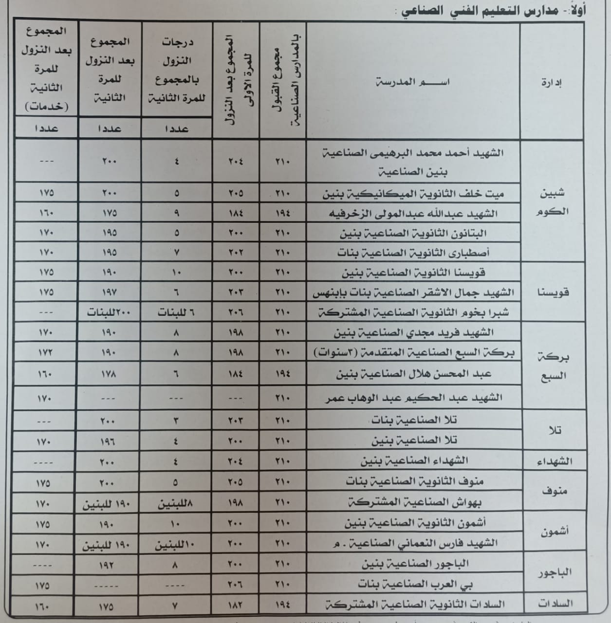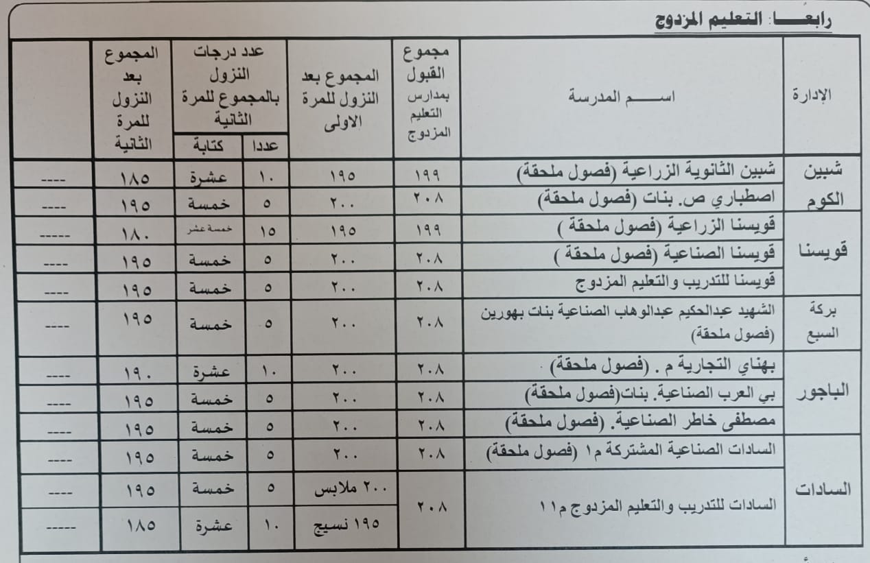 وافق اليوم اللواء إبراهيم أبو ليمون محافظ المنوفية على النزول بدرجات تنسيق القبول ببعض مدارس التعليم الفنى بمختلف تخصصاته (صناعى - زراعى - تجارى - تعليم مزدوج ) لعام 2023 – 2024 وفقًا لأعداد المتقدمين والكثافات الطلابية بكافة الإدارات التعليمية بنطاق المحافظة.