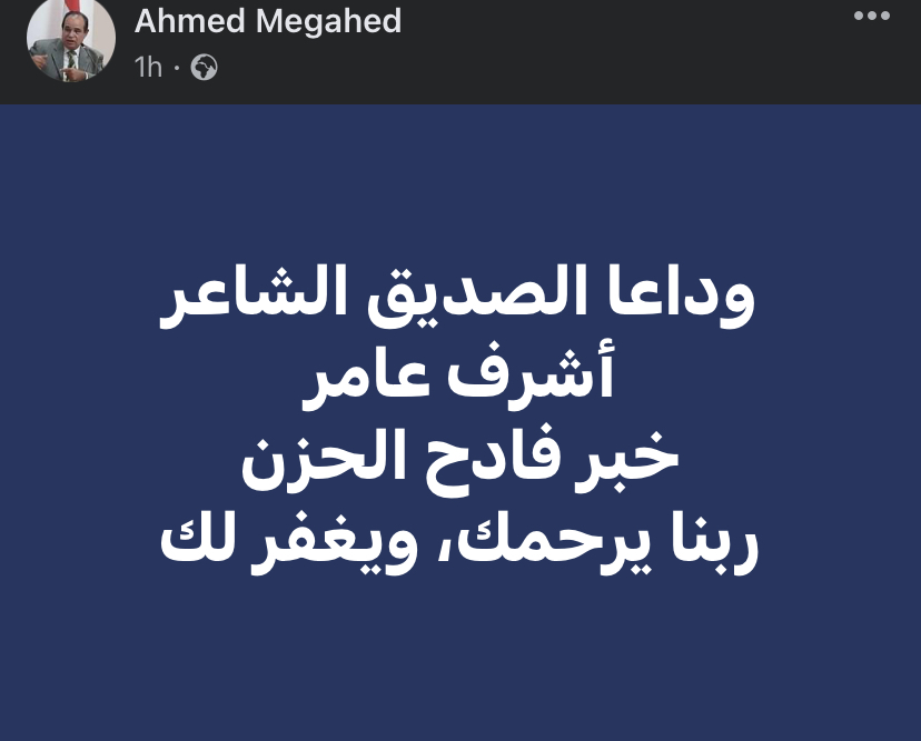 وأعلن الدكتور أحمد مجاهد رئيس هيئة الكتاب الأسبق عبر حسابه الشخصي على موقع التواصل الاجتماعي "فيس بوك" خبر الوفاة، قائلا: "وداعا الصديق الشاعر أشرف عامر.. خبر فادح الحزن.. ربنا يرحمك، ويغفر لك".