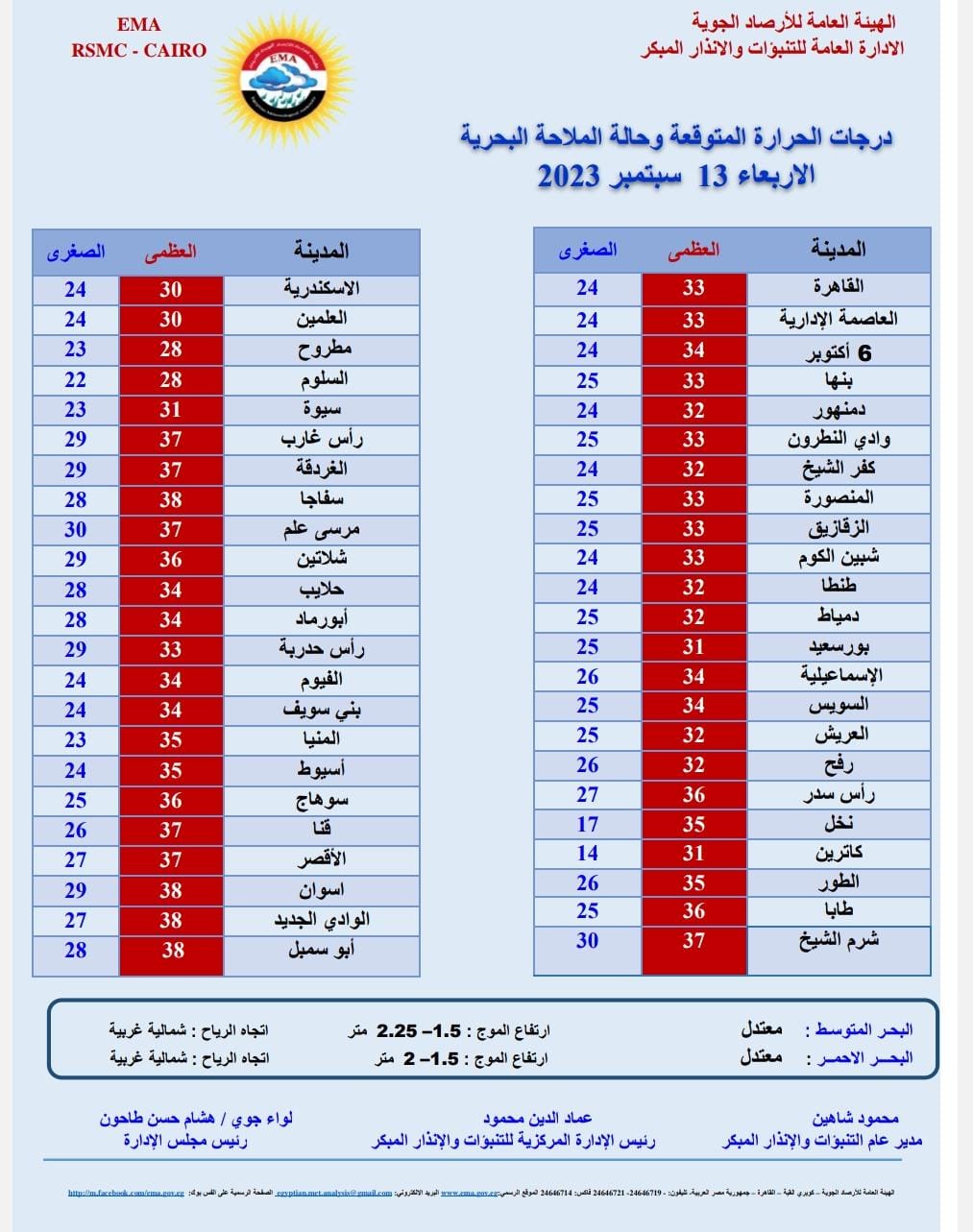 كما توقعت الهيئة استمرار الانخفاض الطفيف على درجات الحرارة على أغلب أنحاء الجمهورية.