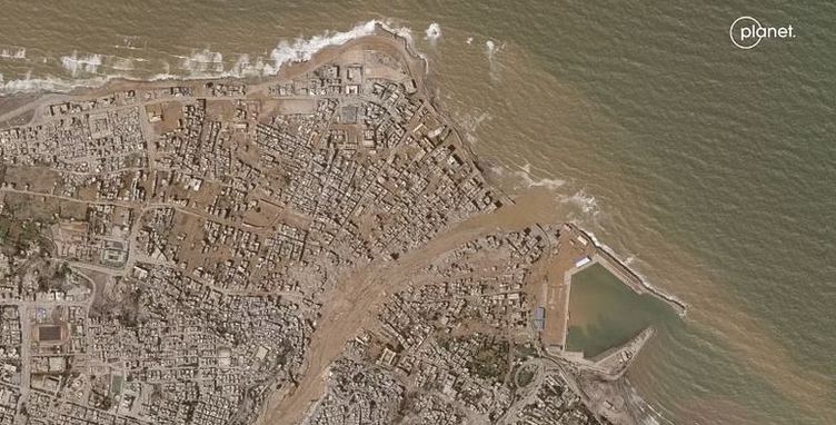 العاصفة دانيال، رصدت شركة بلانيت لابس الأمريكية المتخصصة في التقاط صور للأرض من الفضاء، حجم الدمار الذي حل بـ مدينة درنة شرقي ليبيا، بعد أن ضربتها العاصفة "دانيال" مؤخرا.