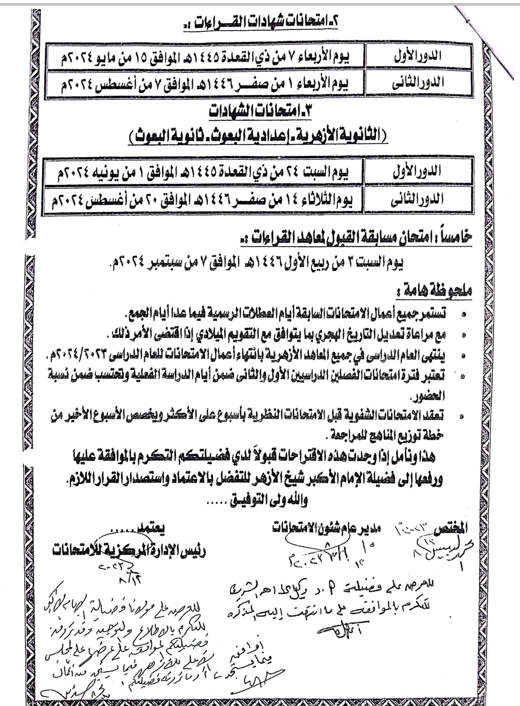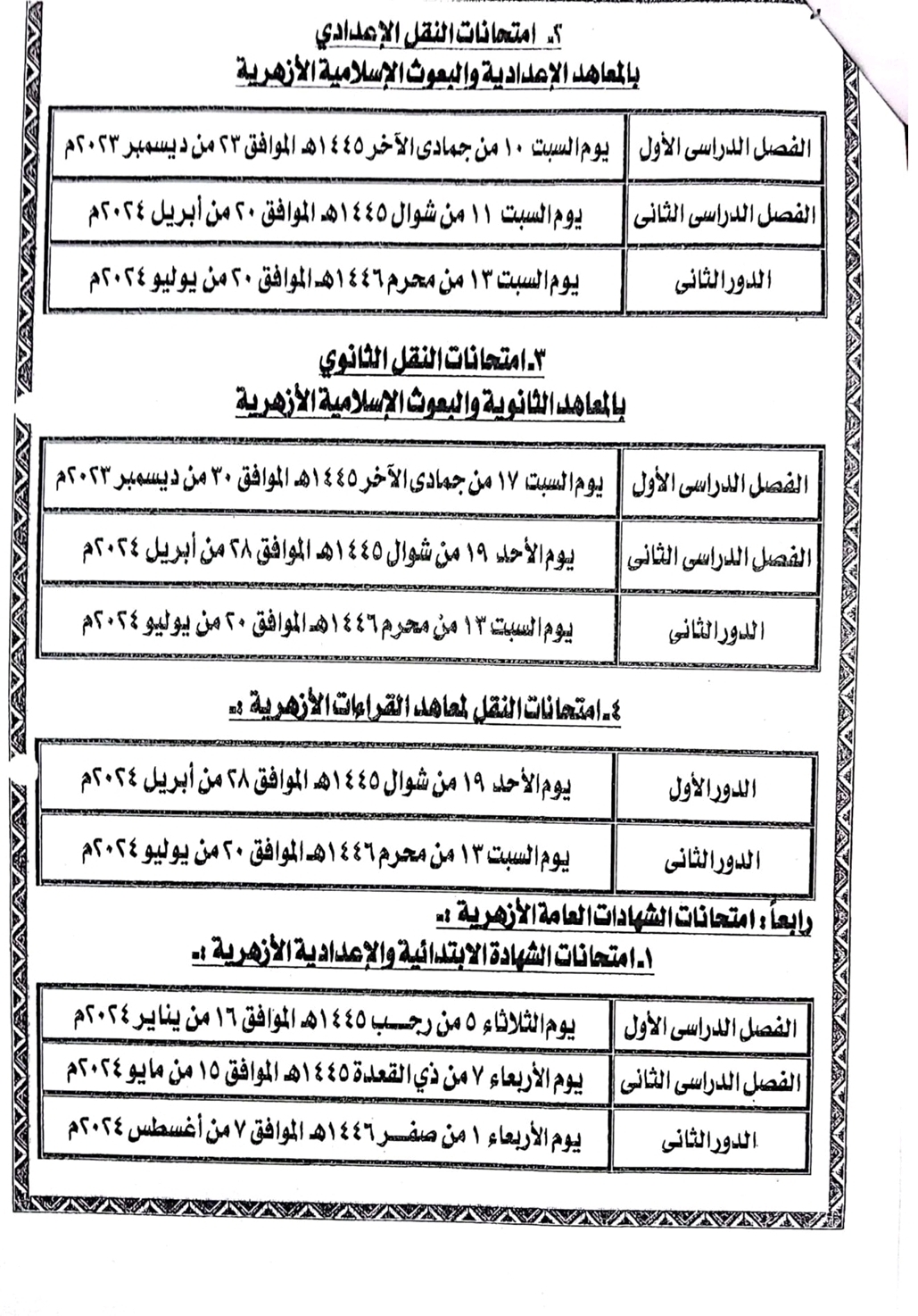 - امتحانات الشهادة الابتدائية والإعدادية الأزهرية:-