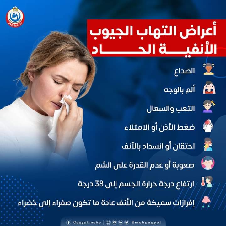 وأوضحت وزارة الصحة أن أهم أعراض التهاب الجيوب الأنفية تشمل: