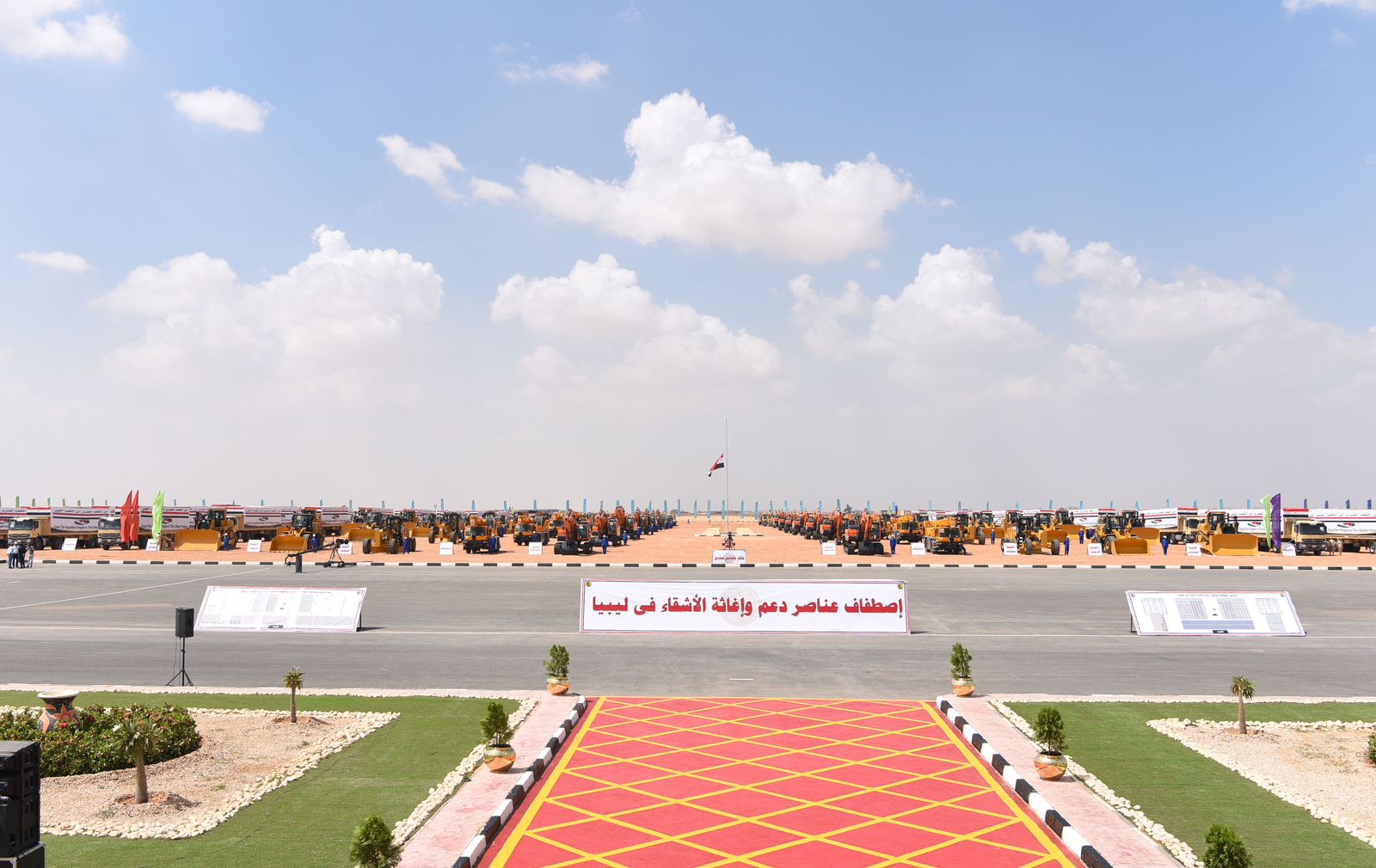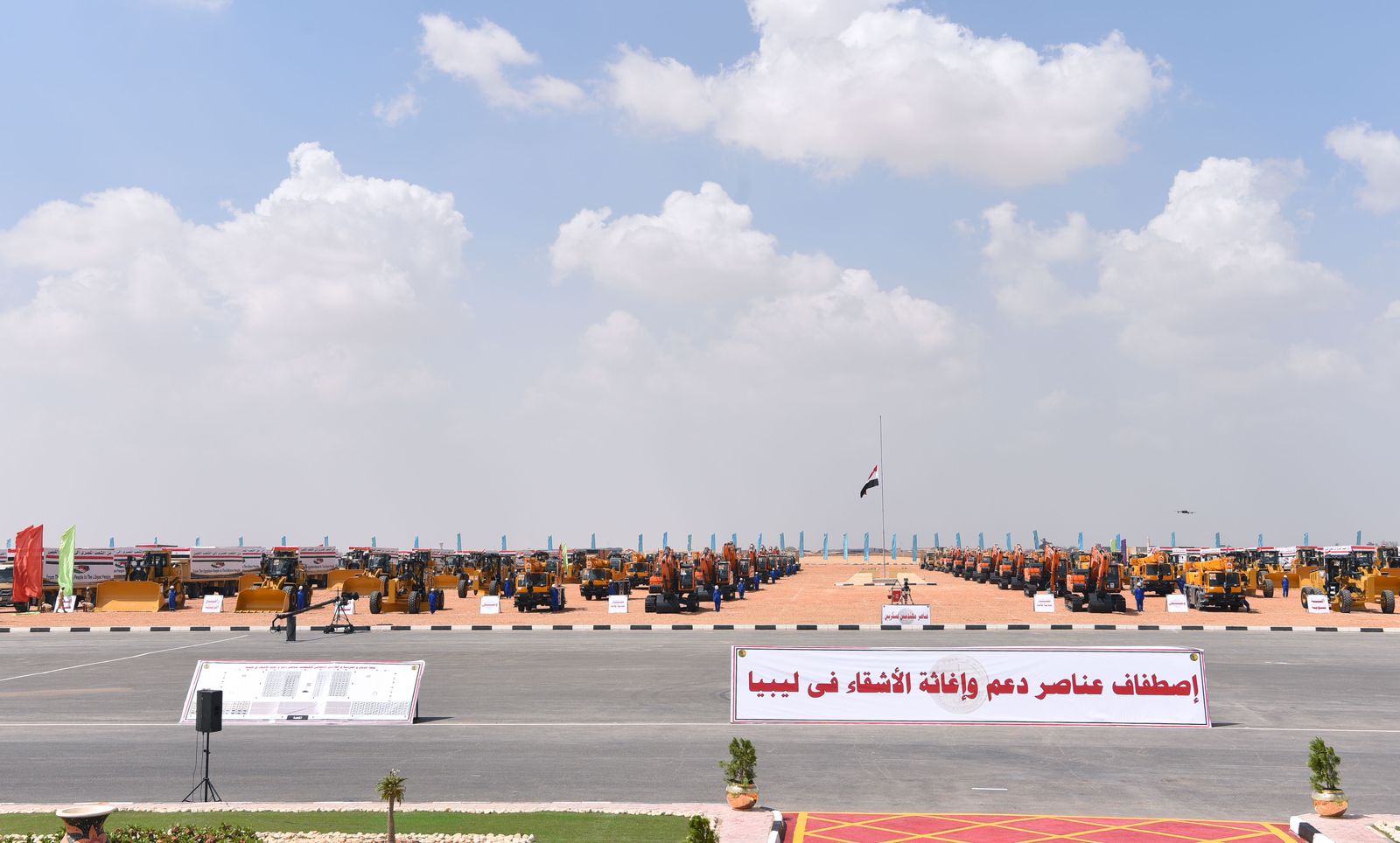 12 صورة ترصد حضور السيسي اصطفاف معدات الدعم والإغاثة والمساعدات الإنسانية للأشقاء في ليبيا