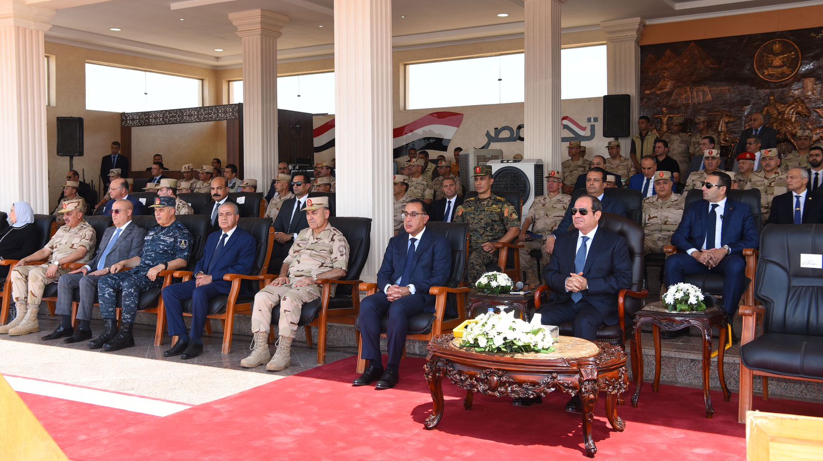 شهد الرئيس عبد الفتاح السيسي، رئيس الجمهورية القائد الأعلى للقوات المسلحة، اصطفاف معدات الدعم والإغاثة والمساعدات الإنسانية للأشقاء في ليبيا.