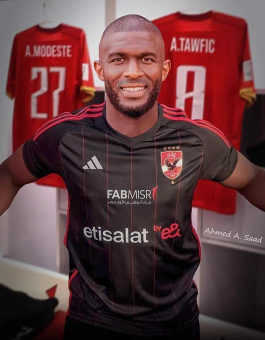"ونشر مغرد ايضا صورة موديست بالتيشرت الأحمر وقال:" سيكون ليك دور كبير مع الفريق".