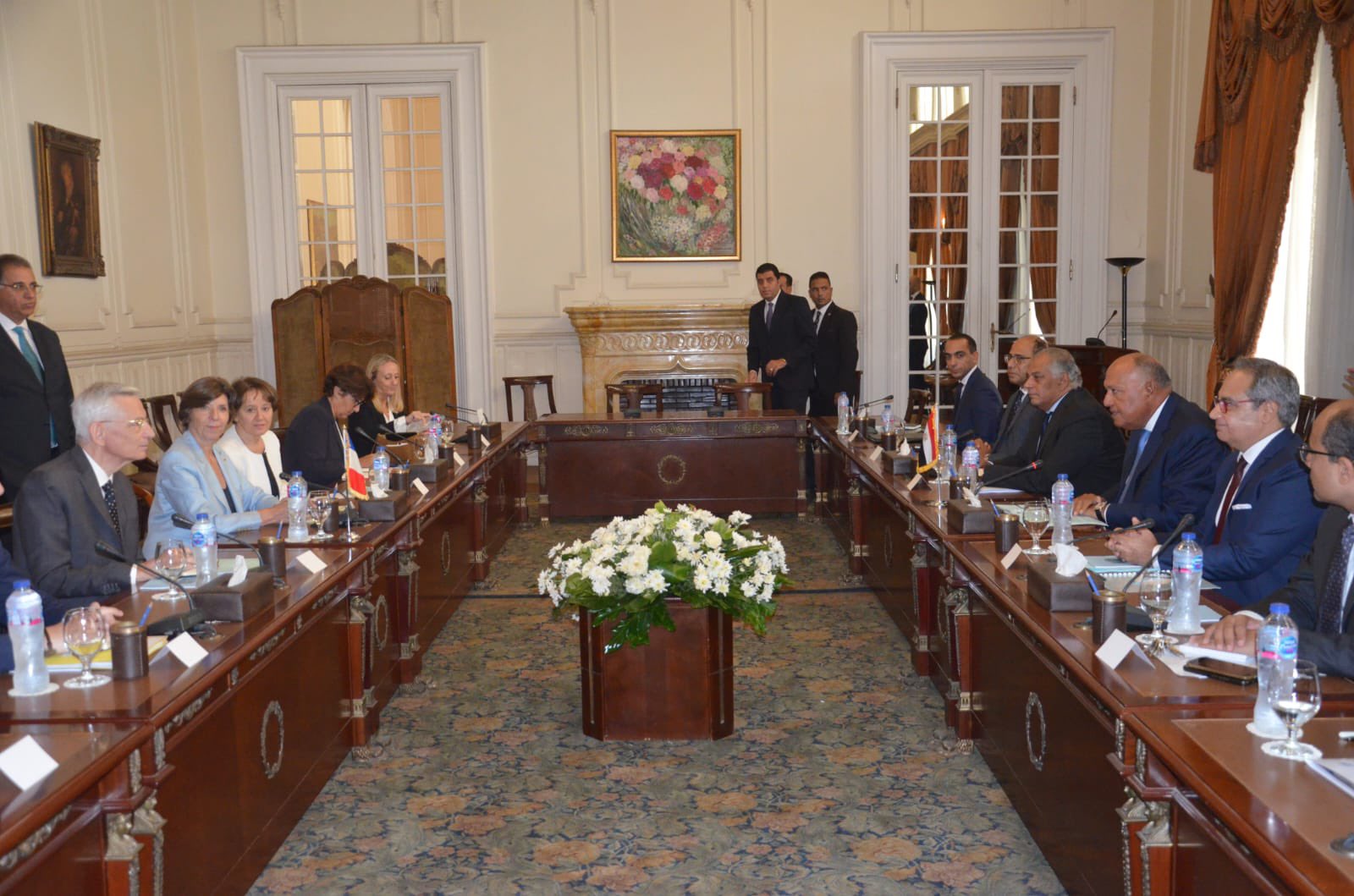 بدء جلسة المباحثات الثنائية الموسعة بين وزير الخارجية ونظيرته الفرنسية (صور)