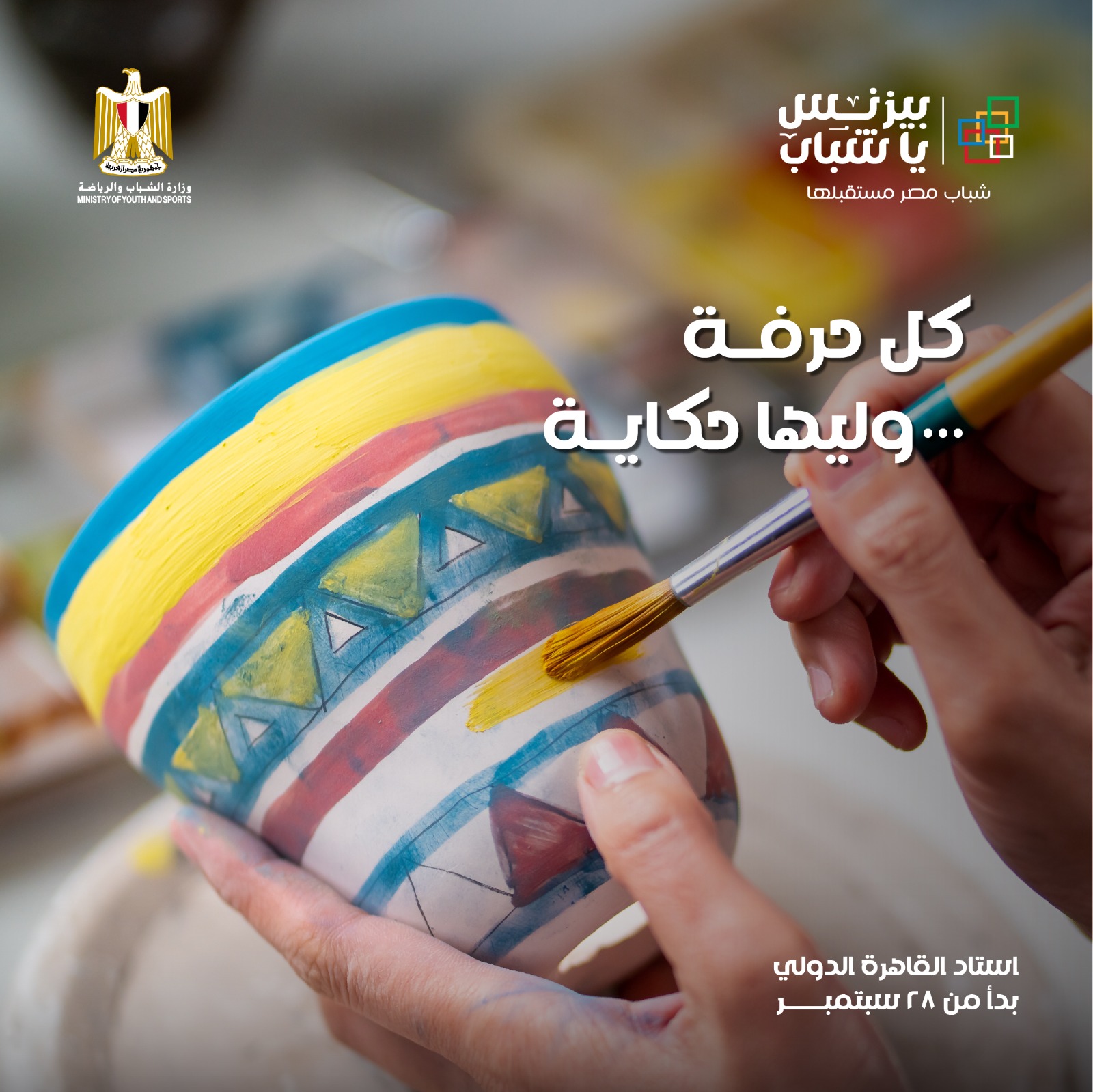 تستعد وزارة الشباب والرياضة من خلال الإدارة المركزية لتمكين الشباب، لإطلاق معرض "بيزنس يا شباب" للمنتجات الحرفية واليدوية تحت شعار "شباب مصر مستقبلها "، والذي يُعد أكبر معرض لمنتجات وصناعات الشباب بمراكز الشباب، والمقرر تنفيذه خلال الفترة من 28 سبتمبر الجاري حتى 4 أكتوبر المقبل، بإستاد القاهرة الدولي.
