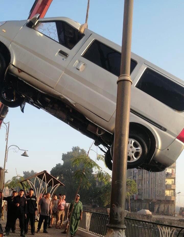 بسبب السرعة الجنوبية، ميكروباص يقتحم السور الحديدي ويسقط في ترعة القاصد بطنطا