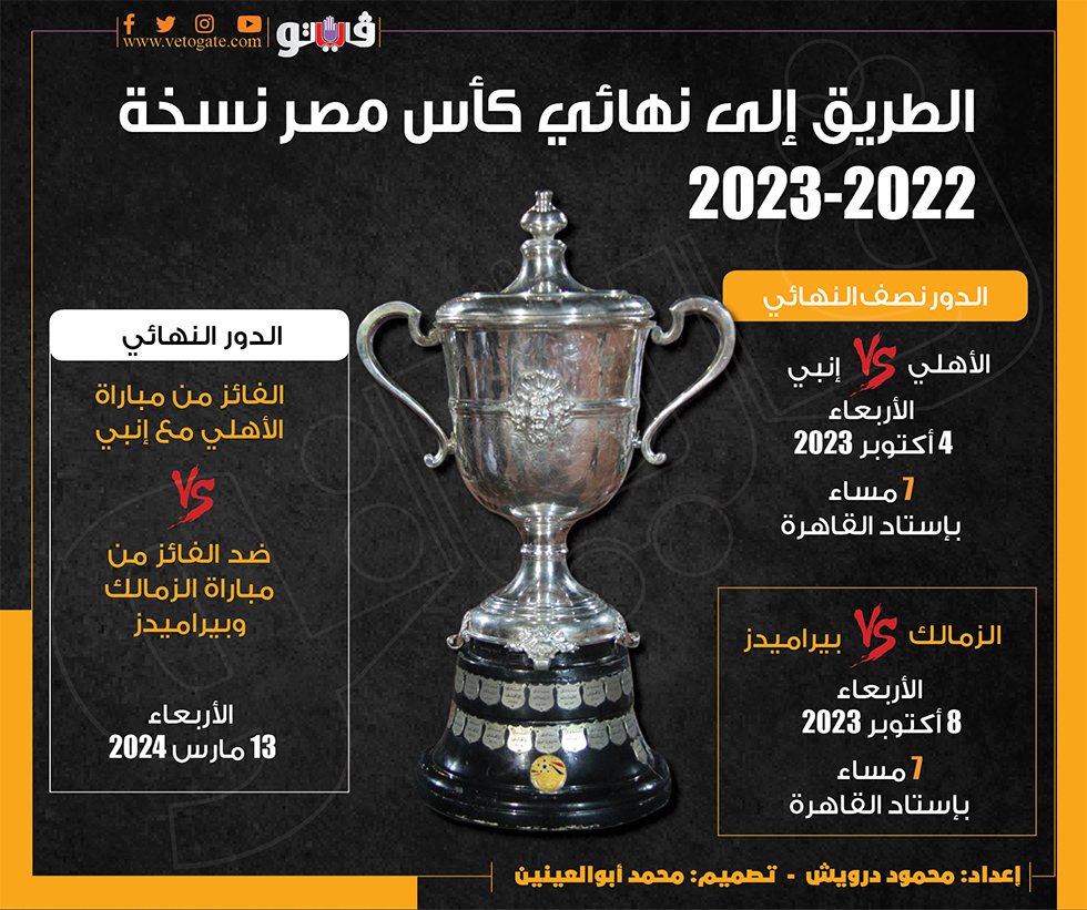 الطريق إلى نهائي كأس مصر نسخة 2022-2023 (إنفوجراف) السبت 16/سبتمبر/2023 - 11:24 ص 9/16/2023 11:24:53 AM نهائي كأس مصر نسخة 2022-2023، فيتو محمود درويش شارك طباعة 18 حجم الخط شارك طباعة نهائى كأس مصر كأس مصر الاهلي ضد انبي الزمالك ضد بيراميدز الأهلي الزمالك بيراميدز