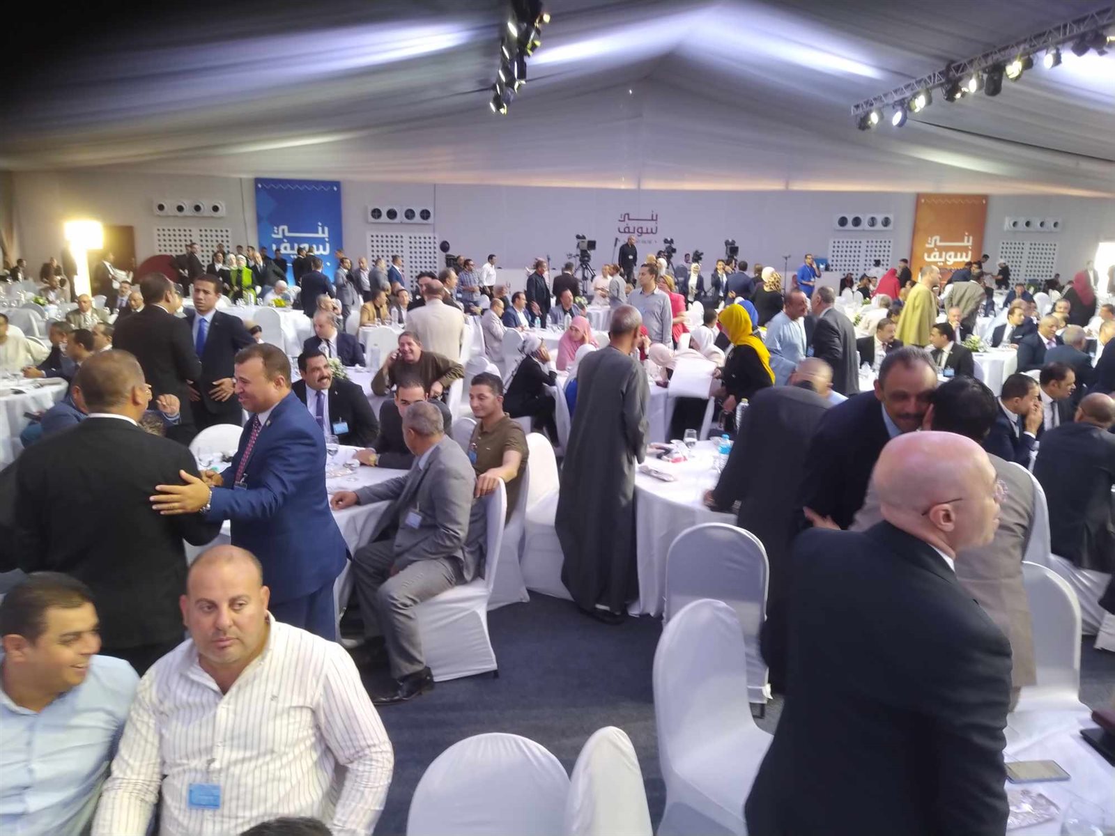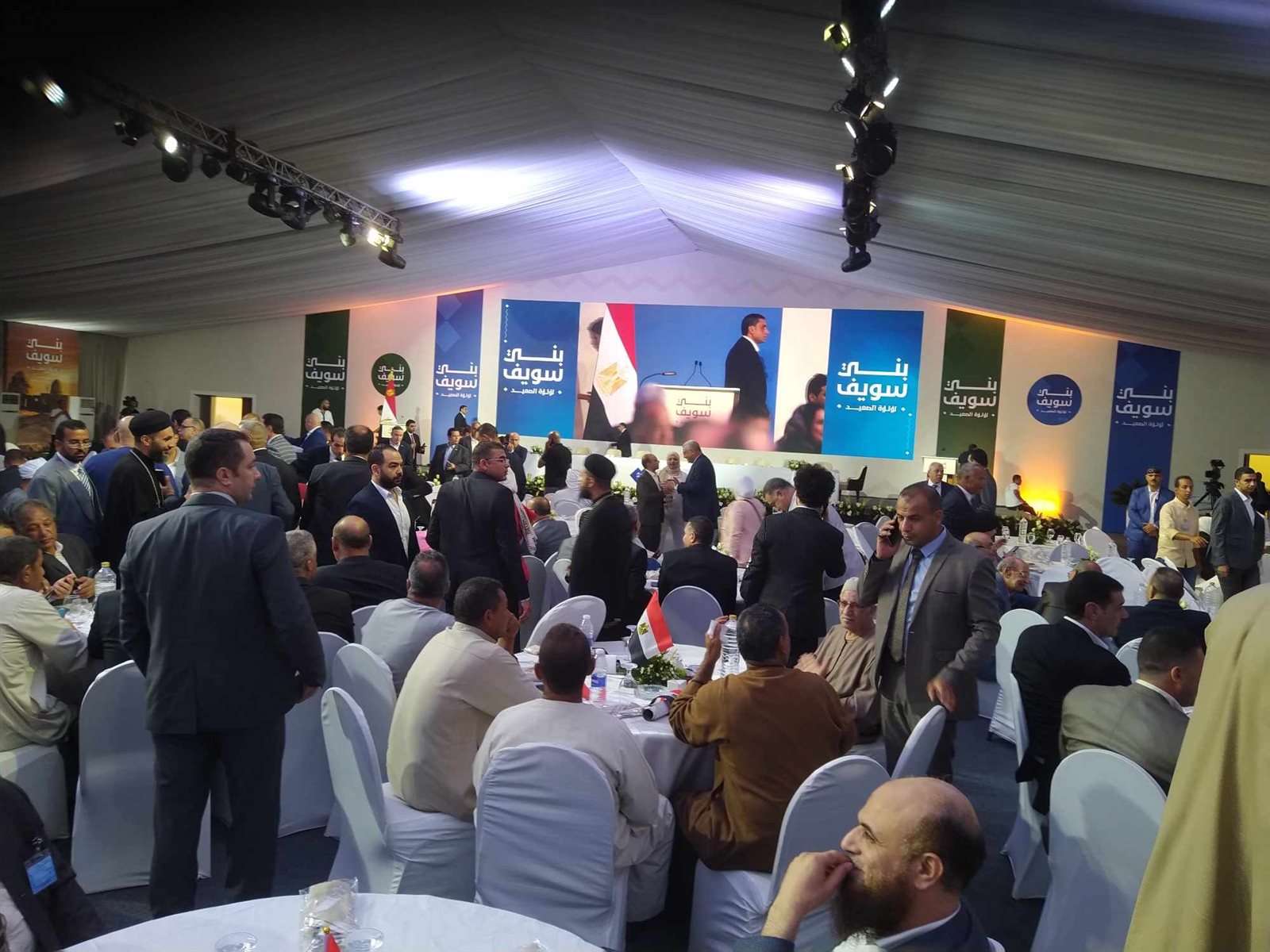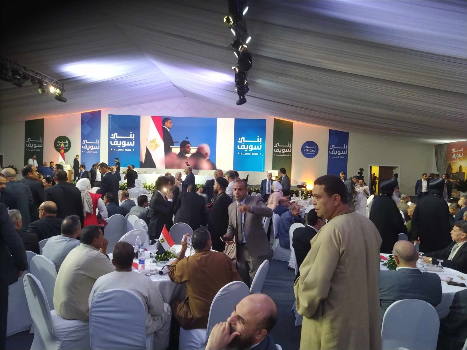 كبار رجال الدولة والقيادات الشعبية والدينية تملأ قاعة استقبال السيسي بقرية سدس الأمراء (صور)