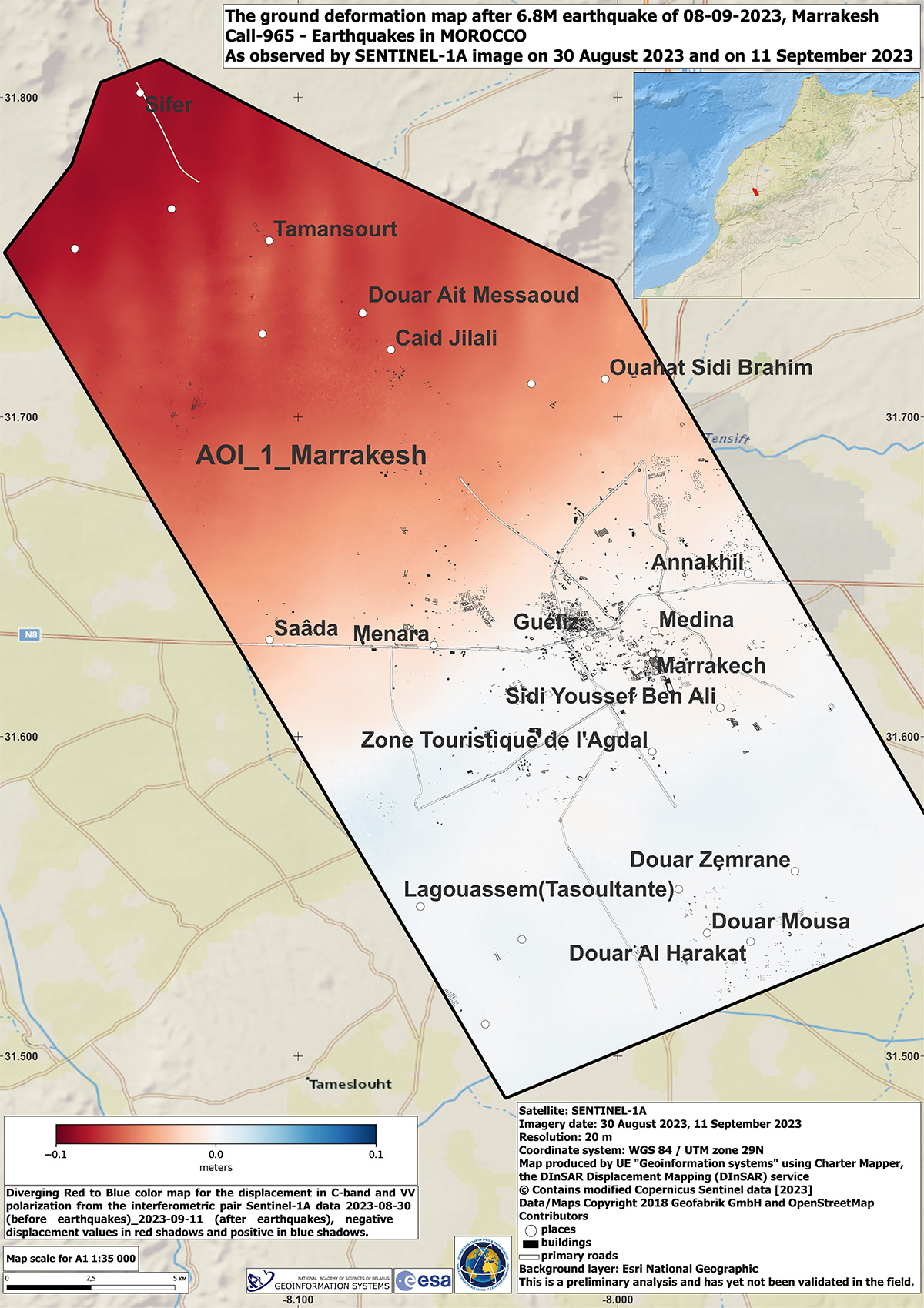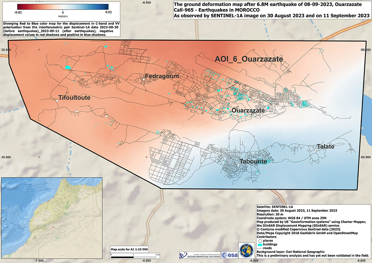 قالت وكالة الفضاء الأوروبية في بيان إن الصور التي تم الحصول عليها من قياسات الأقمار الصناعية تساعد العلماء وفرق الإنقاذ على تقييم الوضع ومخاطر الهزات اللاحقة.