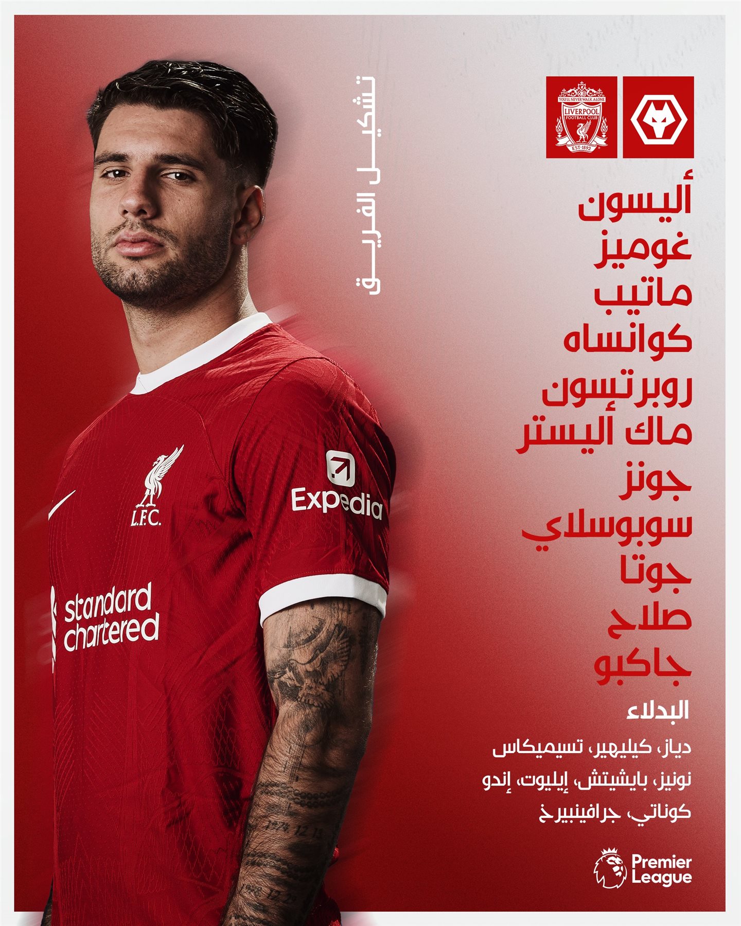 ويقود محمد صلاح تشكيل ليفربول أمام وولفرهامبتون كالتالي: