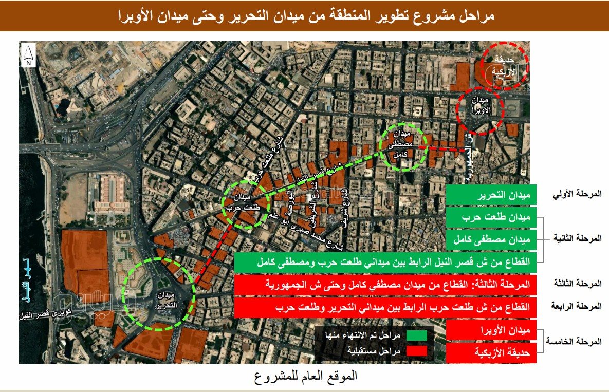 أما المرحلة الثالثة: فتشمل القطاع من ميدان مصطفى كامل وحتى شارع الجمهورية، والمرحلة الرابعة: القطاع من شارع طلعت حرب الرابط بين ميداني التحرير وطلعت حرب، والمرحلة الخامسة: تشمل تطوير ميدان الأوبرا وحديقة الأزبكية.