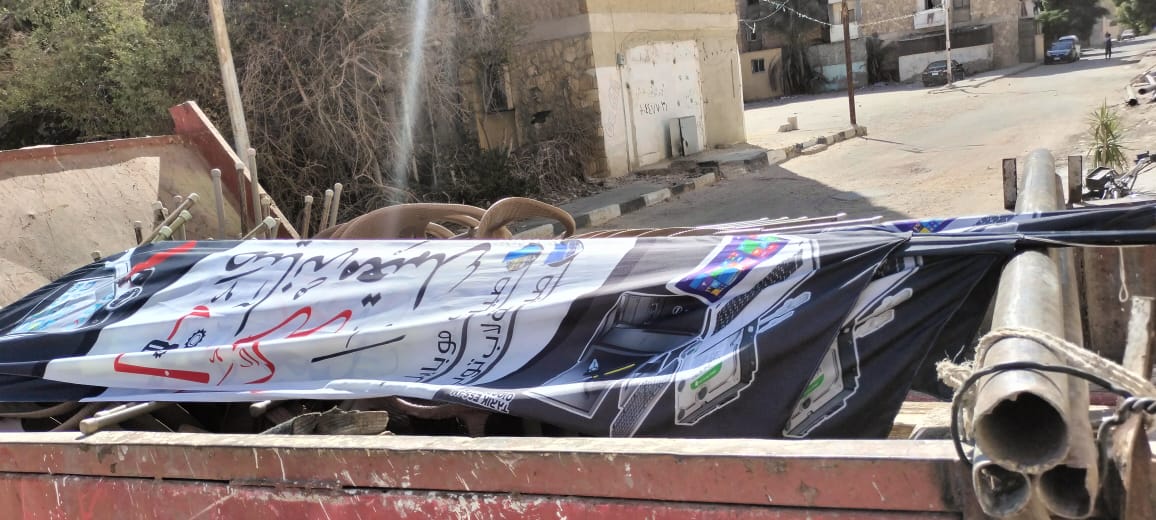 وأسفرت الحملة عن التحفظ على عدد 40 كرسي بلاستيك و6 أعلام قماش، و6 أعمدة خشبية، وعربة كارو.