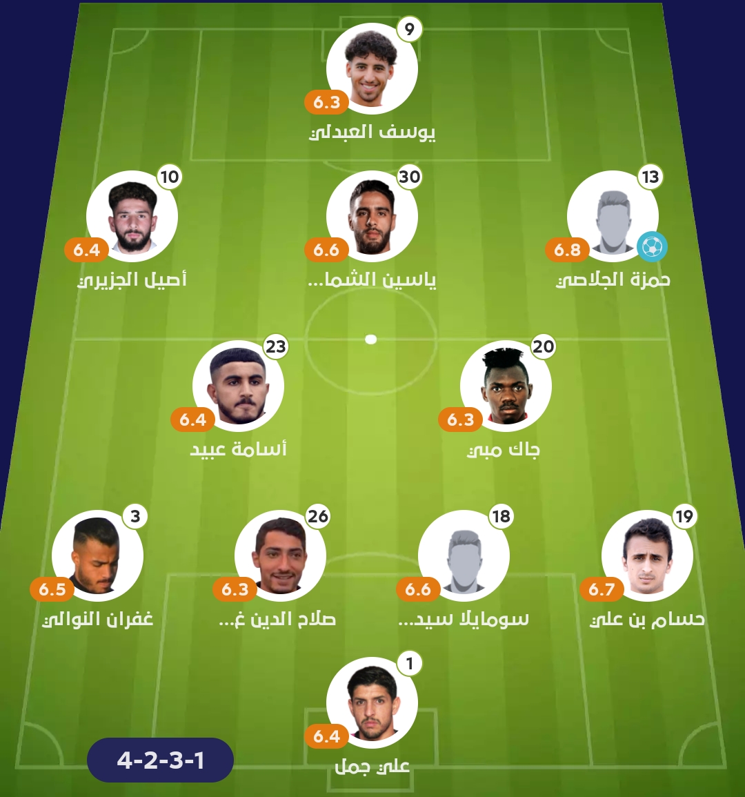 خط الهجوم: حمزة الجلاصي، اصيل الجزيري، يوسف العبدلي.