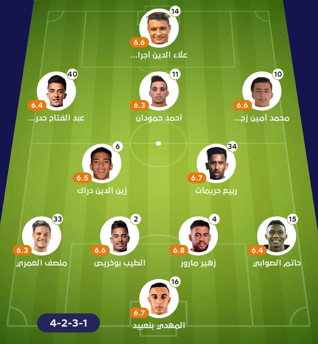 حراسة المرمى: بلعبيد.