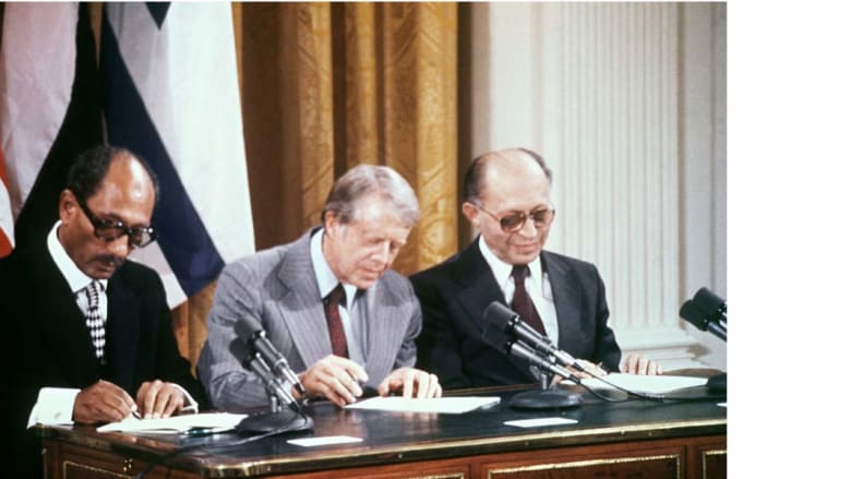 1978 - التوقيع على اتفاقية كامب ديفيد بين مصر وإسرائيل.