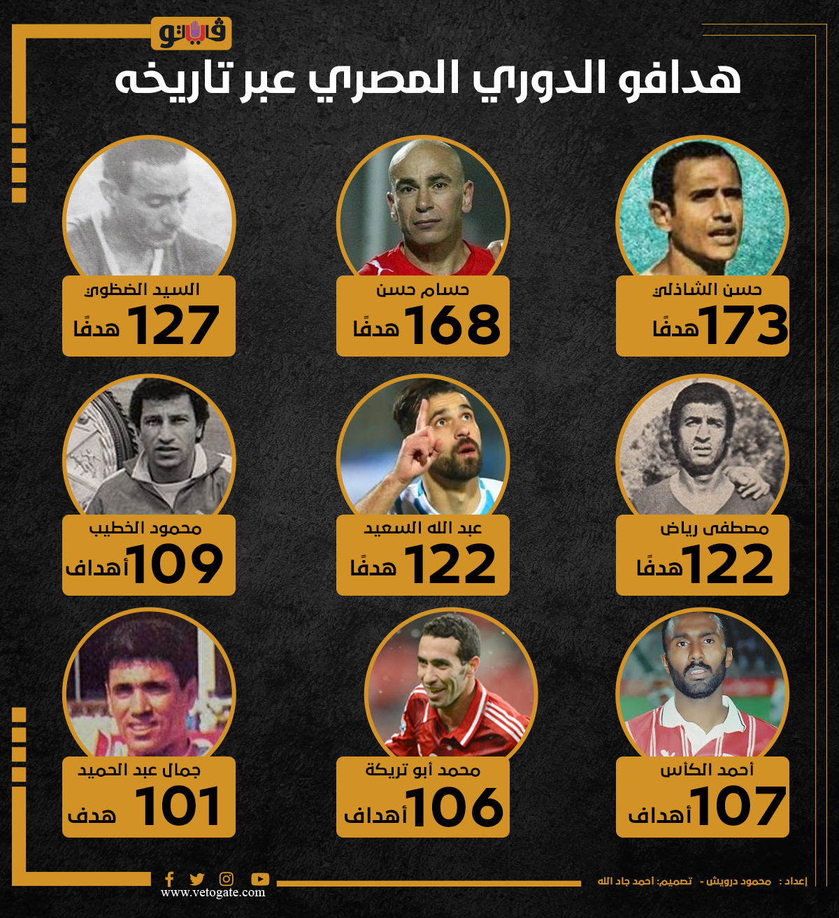هدافو الدوري المصري عبر تاريخه (إنفوجراف) الثلاثاء 19/سبتمبر/2023 - 12:10 م 9/19/2023 12:10:26 PM حسن الشاذلي محمود درويش شارك طباعة 18 حجم الخط شارك طباعة هدافي الدوري المصري الدوري المصري حسن الشاذلي حسام حسن السيد الضظوي عبد الله السعيد محمود الخطيب