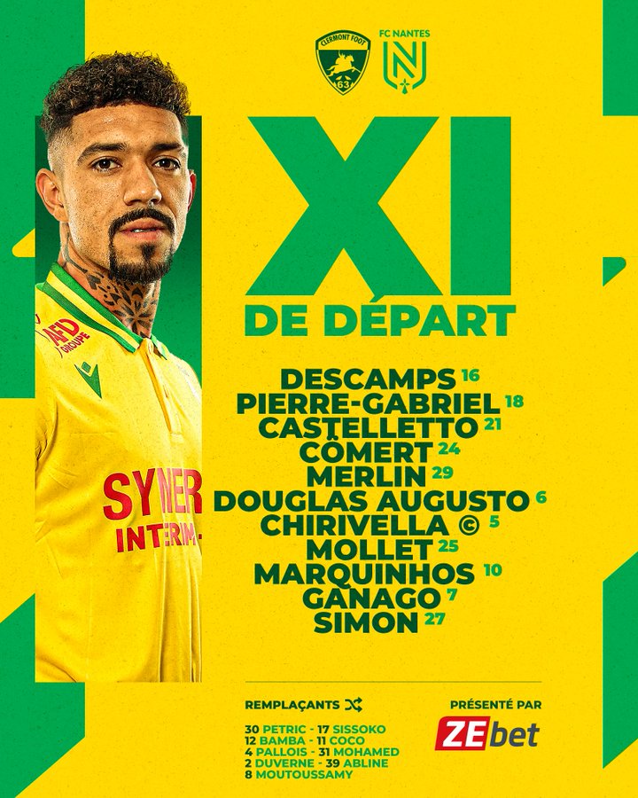 الدوري الفرنسي، نانت يتعادل سلبيًا أمام كليرمون في الشوط الأول
