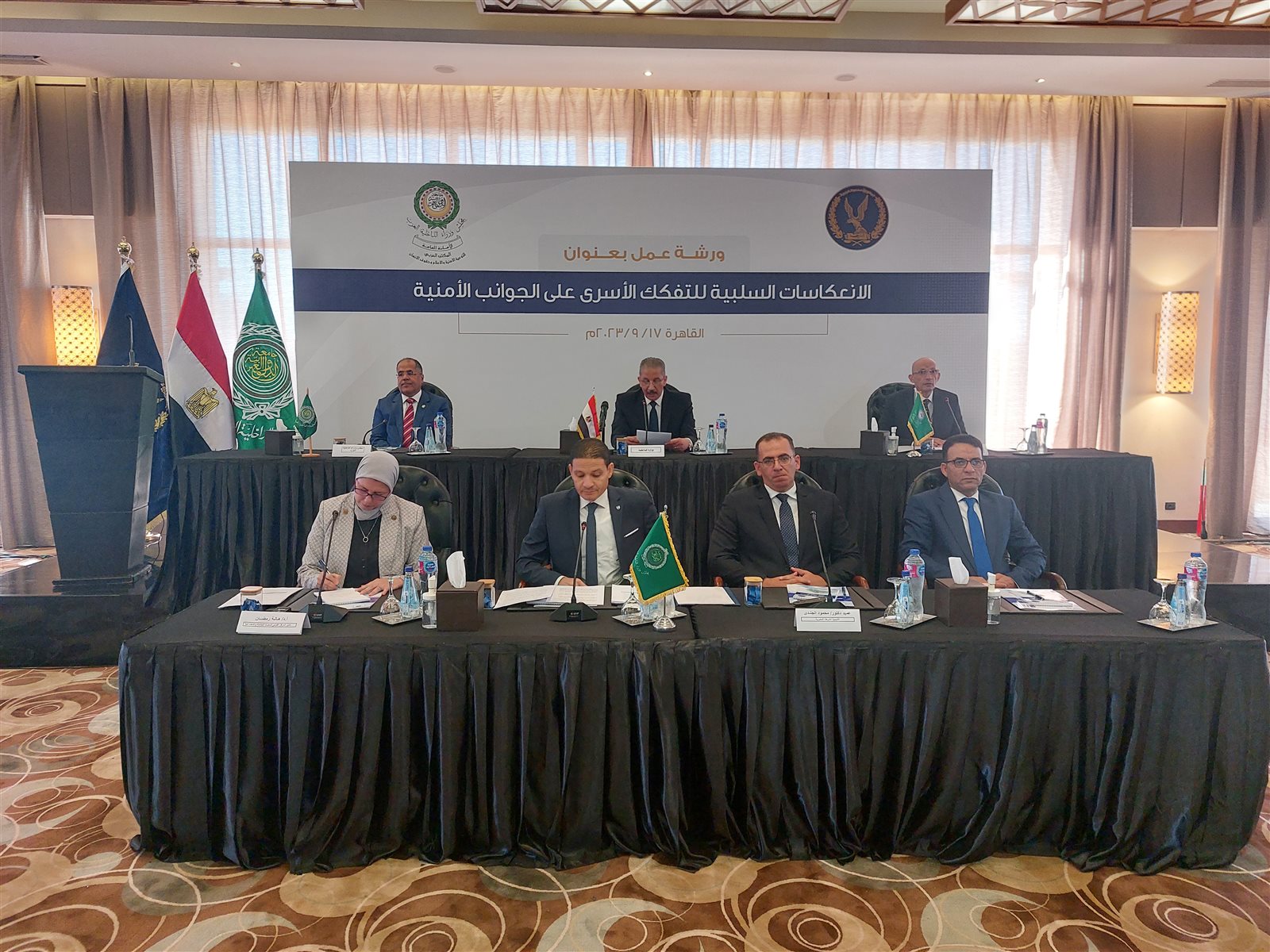 نظم المكتب العربي للتوعية الأمنية والإعلام وحقوق الإنسان بالتنسيق مع وزارة الداخلية، اليوم الأحد ورشة عمل حول (الانعكاسات السلبية للتفكك الأسرى على الجوانب الأمنية) بالقاهرة.