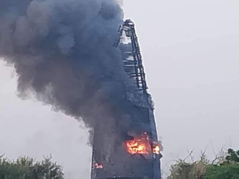 واندلاع حريق برج شركة النيل للبترول، أحد أهم أبراج العاصمة "الخرطوم" بمنطقة المقرن، جراء استمرار الاشتباكات بين الجيش السوداني ومليشيا الدعم السريع.