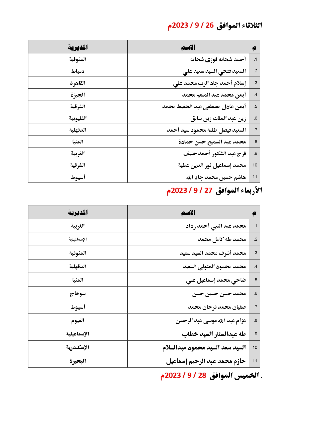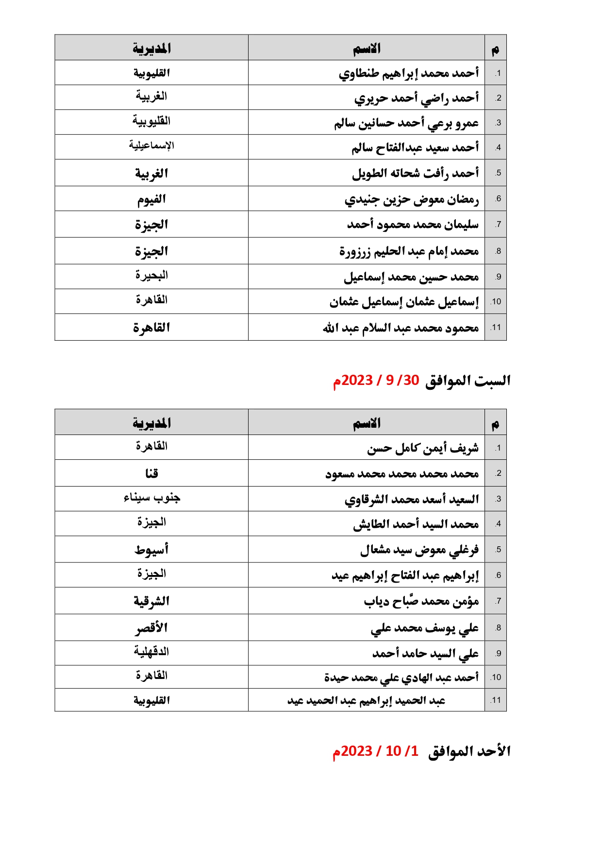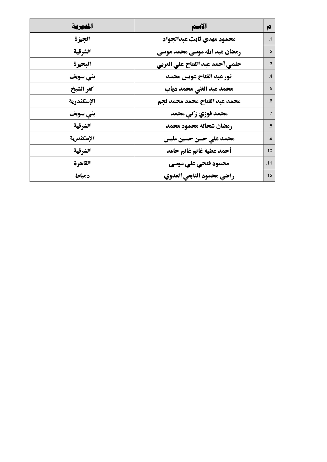 نبهت وزارة الأوقاف، على الآتية أسماؤهم الحضور للمقابلة الشفوية في مسابقة إيفاد قراء شهر رمضان، بمسجد النور بالعباسية في تمام الساعة التاسعة صباحًا.