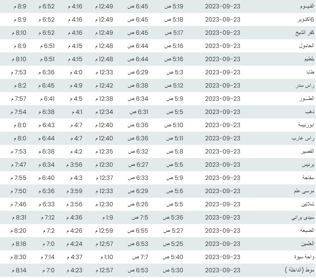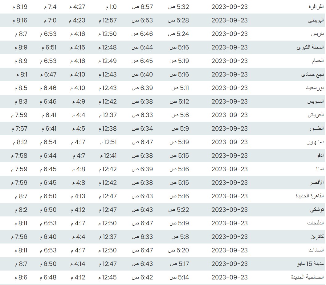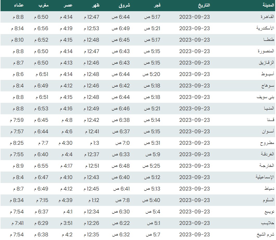 مواقيت الصلاة اليوم بتوقيت القاهرة