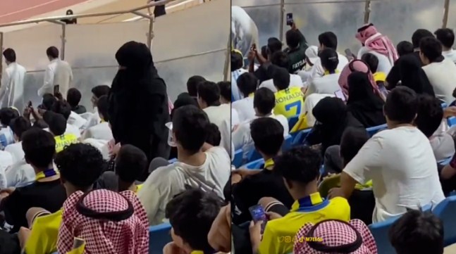 صلاة سيدة بين المشاهدين في الاستاد، تثير غضب جماهير الكرة السعودية (فيديو)