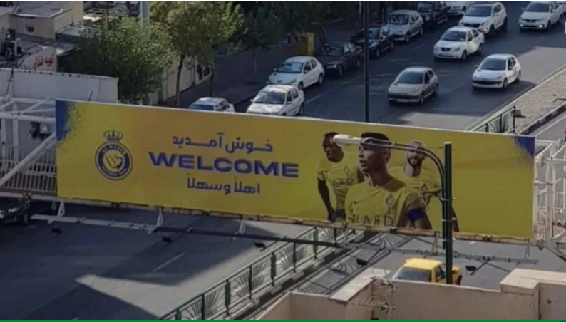 وتداول بعض صفحات نادي النصر الجماهيرية على موقع التدوينات القصيرة "X"، لافتات تحمل صور نجوم نادي النصر داخل شوارع إيران، وذلك احتفالًا بوصول بعثة العالمي إلى هناك، والتي تضم الأسطورة كريستيانو رونالدو.
