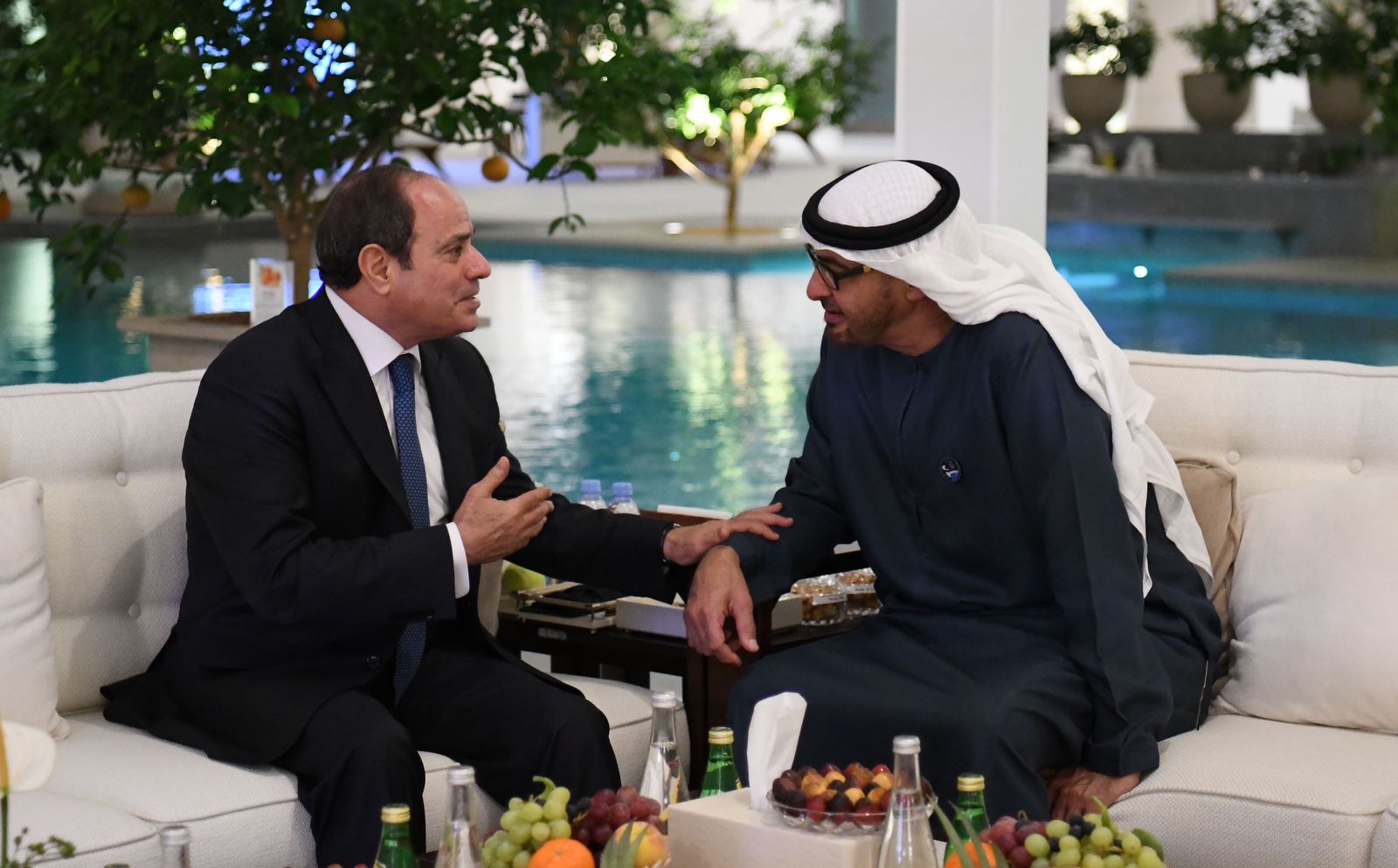 وصرح المتحدث الرسمي باسم رئاسة الجمهورية المستشار أحمد فهمي أن الرئيسين أعربا عن اعتزازهما بالعلاقات الأخوية الوطيدة بين مصر والإمارات، على مستوى القيادتين وبين الشعبين الشقيقين، والتي تنعكس على التنسيق الوثيق بين الدولتين بهدف دعم استقرار المنطقة العربية، لاسيما في هذه المرحلة التي تتزايد فيها التحديات دوليًا وإقليميًا.