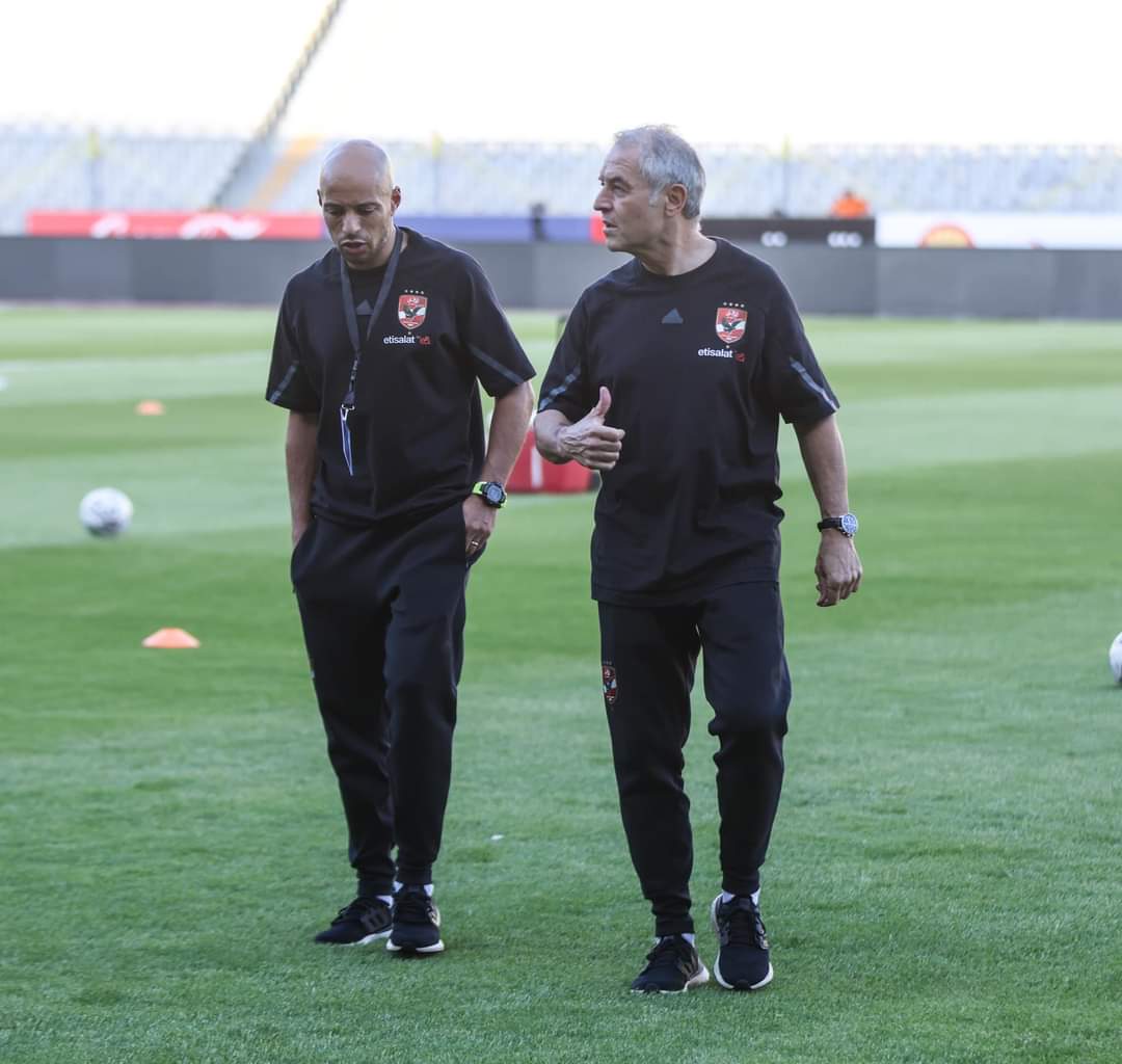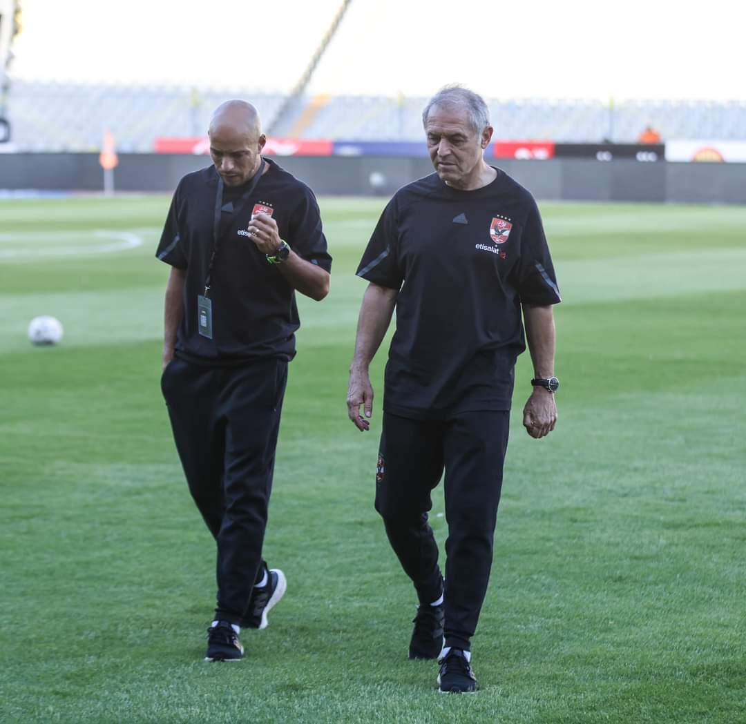 كولر يعاين أرضية ملعب ستاد برج العرب قبل مباراة الأهلي والمصري (صور)