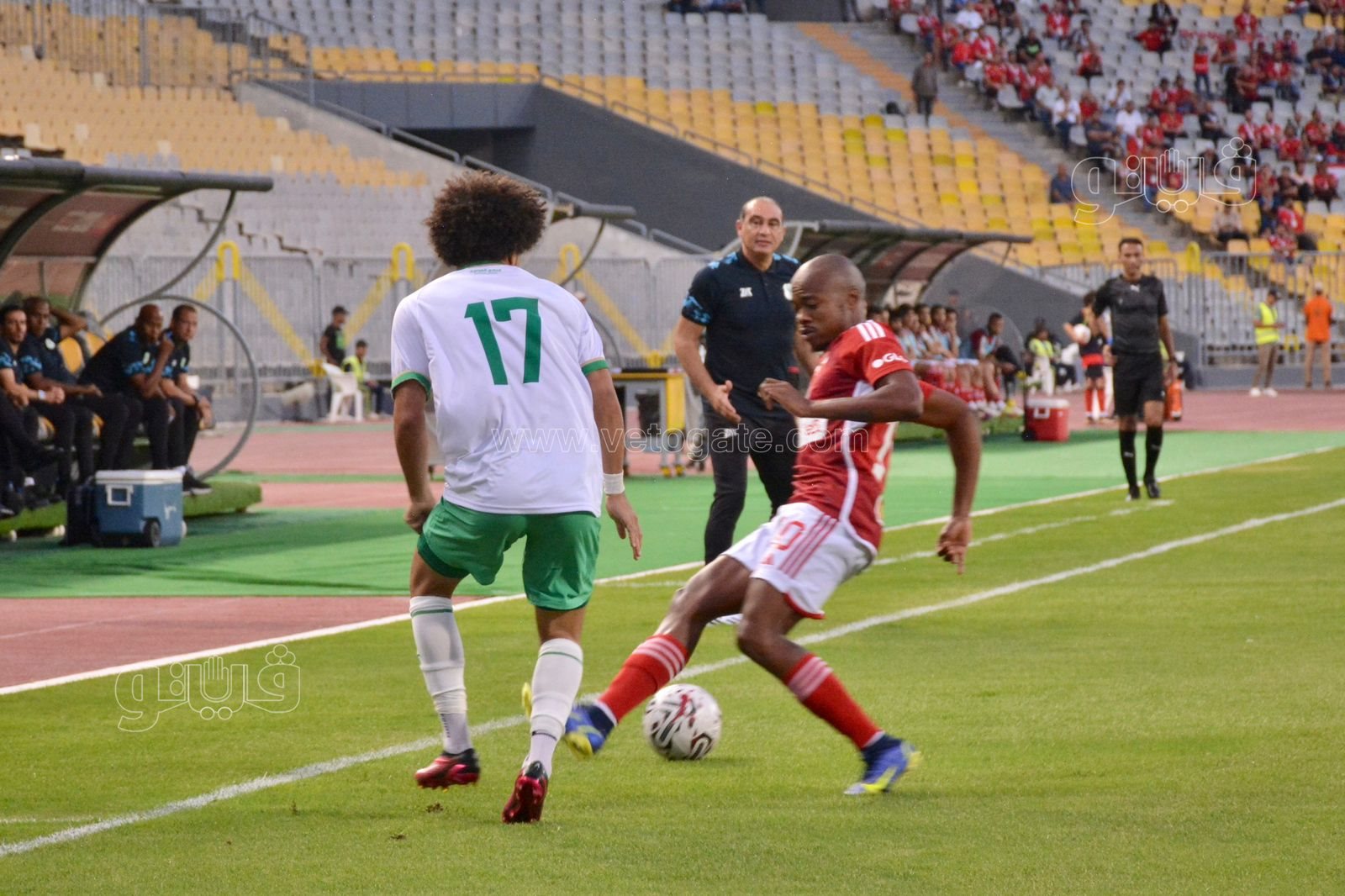 وحاول المصري امتصاص ضغط الأهلي ولعب كرات طولية لخط الهجوم مستغلا من تقدم الدفاع.