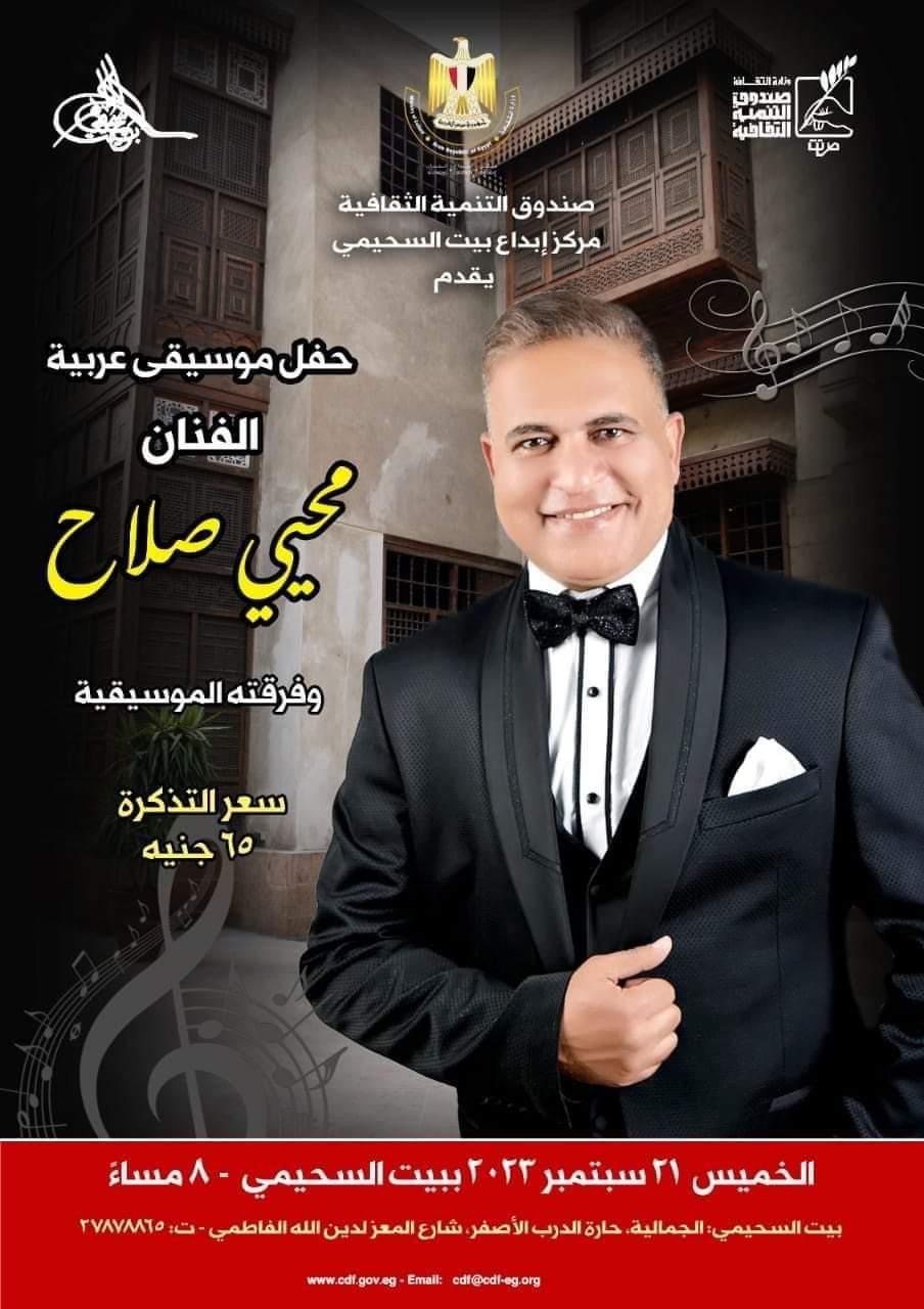 يُقيم مركز إبداع بيت السحيمي التابع لقطاع صندوق التنمية الثقافية، فى الثامنة من مساء الخميس المقبل الموافق ٢١ سبتمبر الجاري حفلًا غنائيًا للمطرب مُحيي صلاح وفرقته الموسيقية.