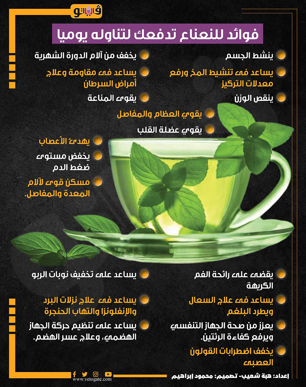 فوائد للنعناع تدفعك لتناوله يوميا (انفوجراف) الأحد 24/سبتمبر/2023 - 12:15 م 9/24/2023 12:15:05 PM فوائد النعناع، فيتو هبة شعيب شارك طباعة 18 حجم الخط شارك طباعة فوائد النعناع النعناع الدكتور أحمد السيد صحة الصحة
