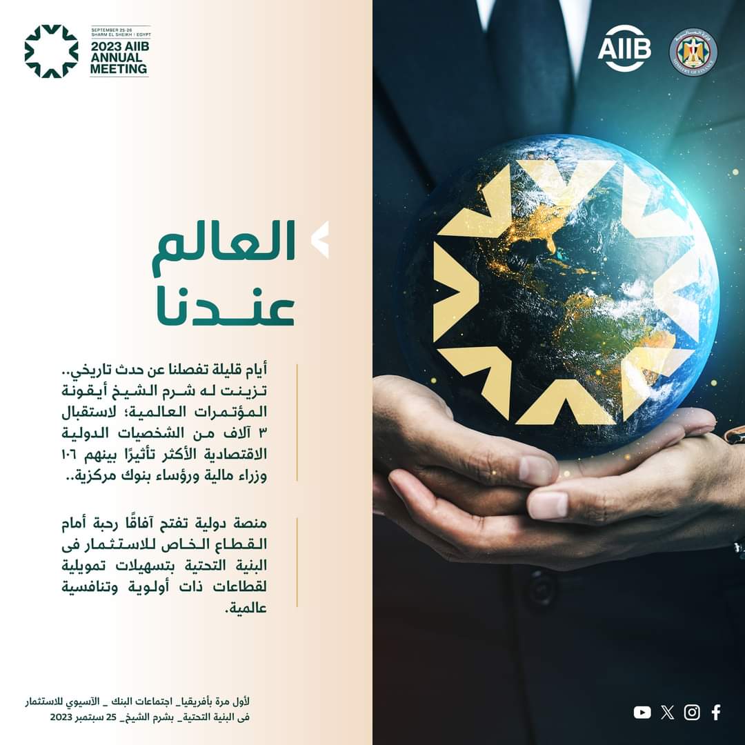 بدوره قال الدكتور محمد معيط وزير المالية، محافظ البنك الآسيوي للاستثمار فى البنية التحتية، إن مصر تمتلك القدرات والخبرات التى تؤهلها لاستضافة المحافل العالمية بالصورة اللائقة والمشرفة، موضحًا أن الدولة المصرية بمختلف أجهزتها ومؤسساتها الوطنية تضع كل إمكانياتها لإنجاح الاجتماعات السنوية للبنك الآسيوي للاستثمار فى البنية التحتية.