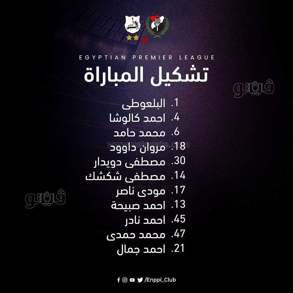 وضم تشكيل إنبي في مواجهة الداخلية ببطولة الدوري المصري كلا من: