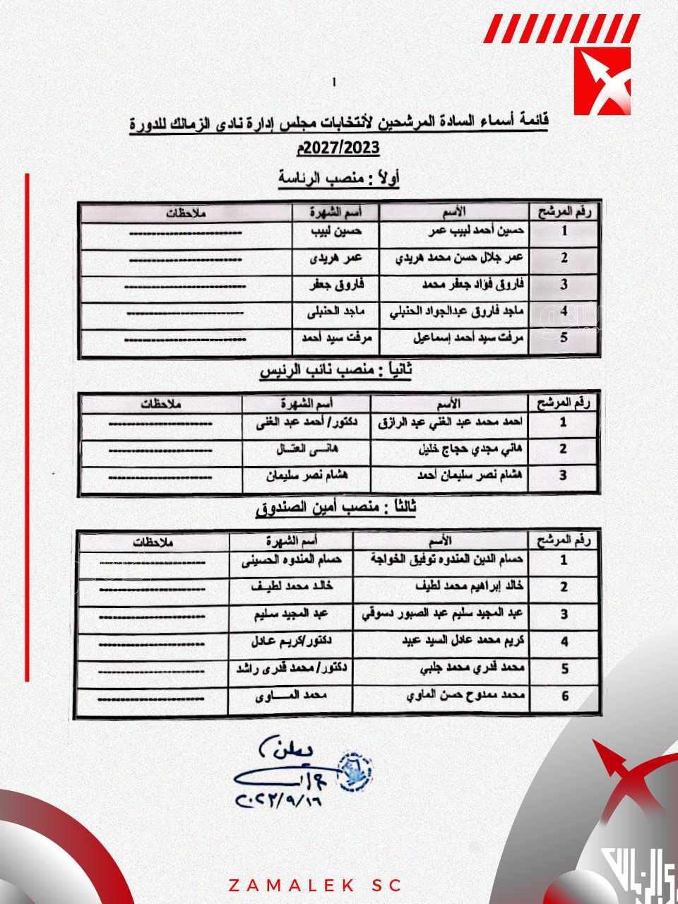 كما شهدت قائمة المرشحين تقدم خالد لطيف أمين الصندوق واللواء علاء مقلد على منصب العضوية التقدم بأوراق الترشح من المجلس المستقيل مؤخرا.