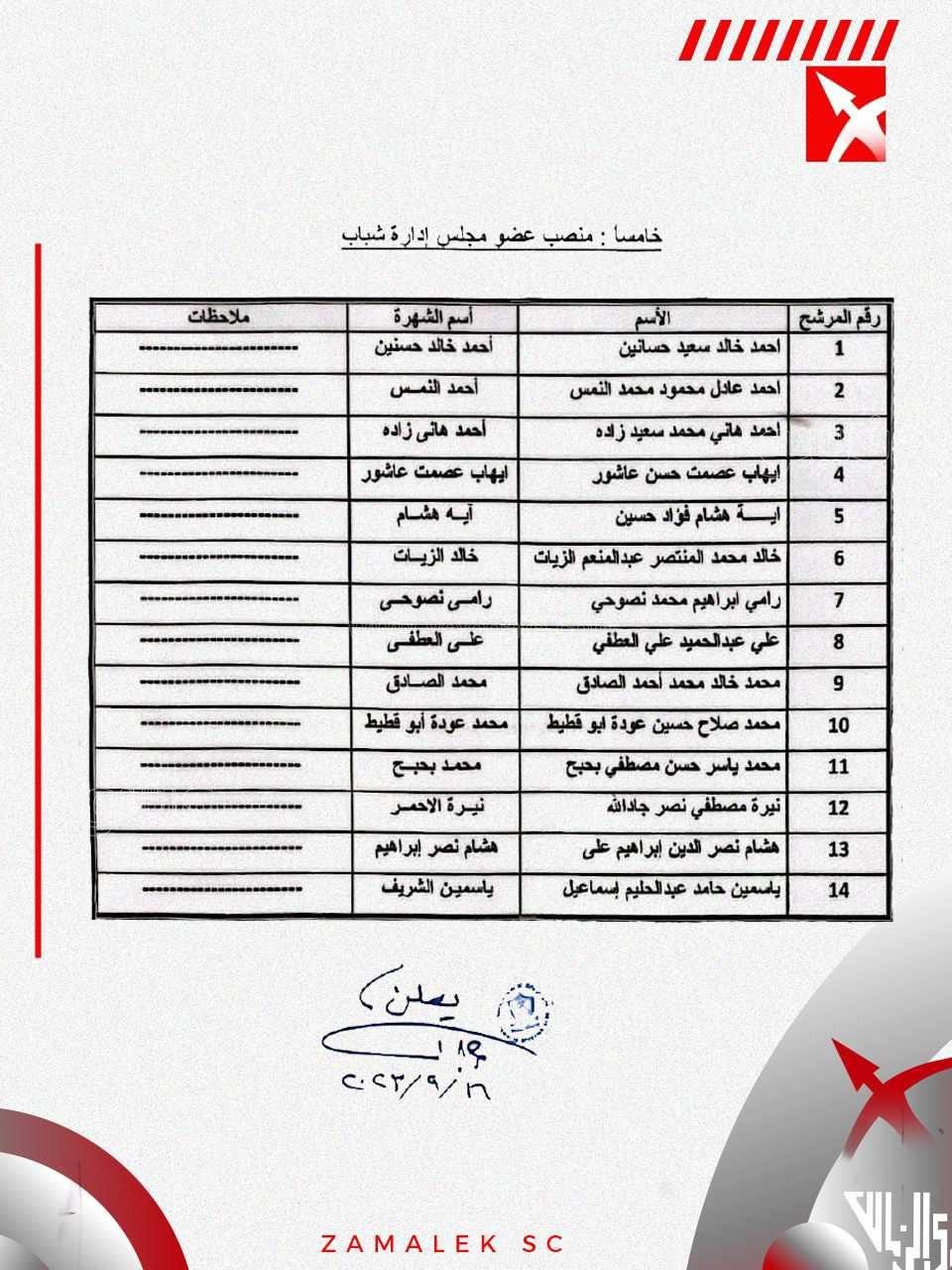 كما يتنافس على منصب العضوية تحت السن 14 مرشحا للفوز بـ مقاعد في انتخابات الزمالك هم:
